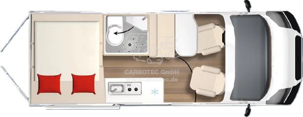 - Aufstiegshilfe für Heckdoppelbetten in Schottwand integriert