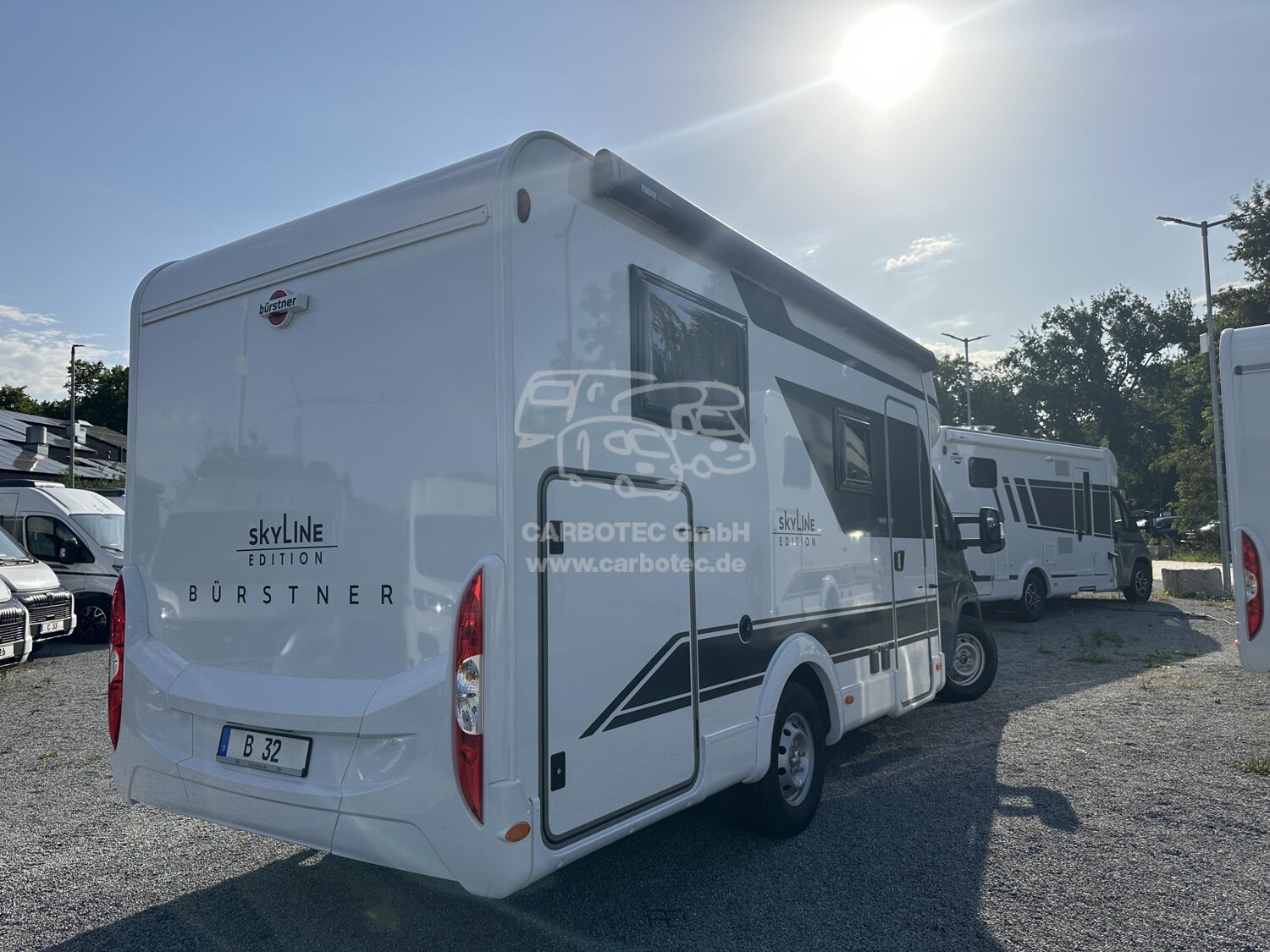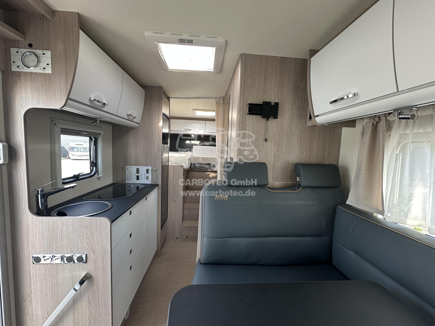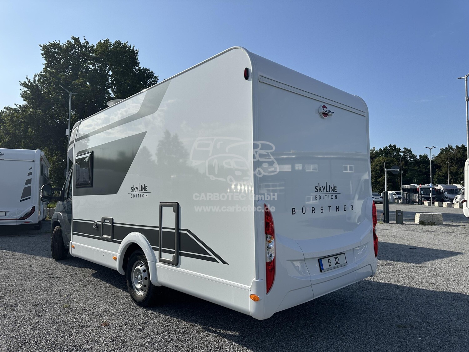 - (Bürstner SkyLine Edition ( Fiat Ducato Multijet 3-2,2 1- 140 Ps - Euro VI E inkl. 8-Gang Automatikgetriebe (Heavy Duty), Lackierung Lanzarote Grau (Fahrerhaus), Frontspoiler in Wagenfarbe lackiert, Coupe-Elnstleg, XL Aufbautür, Multimediastation inkl. Rückfahrkamera, Radiovorbereitung inkl. DAB+ und Antenne Im Außenspiegel, Markise, Polster mit Bestickung ?skyLine Edition? - Vollleder, Kompressorkühlschrank 131,5 L (davon 15 L Gefrierfach), Sitzgruppe in L-Form Inkl. Einsäulentischfuß, Tischplatte in alle Richtungen verschiebbar, SAT-Anlage Teleco HD Telesat 65 cm, Halterung für Flachbildschirm, Zusatzpolster Umbau Einzelbetten zu Doppelbett, Fahrerhaus Faltverdunkelung, GFK Unterboden, Cap-Holder, Tagfahrlicht, l6 ZolI Felgen mit Ganzjahresreifen)