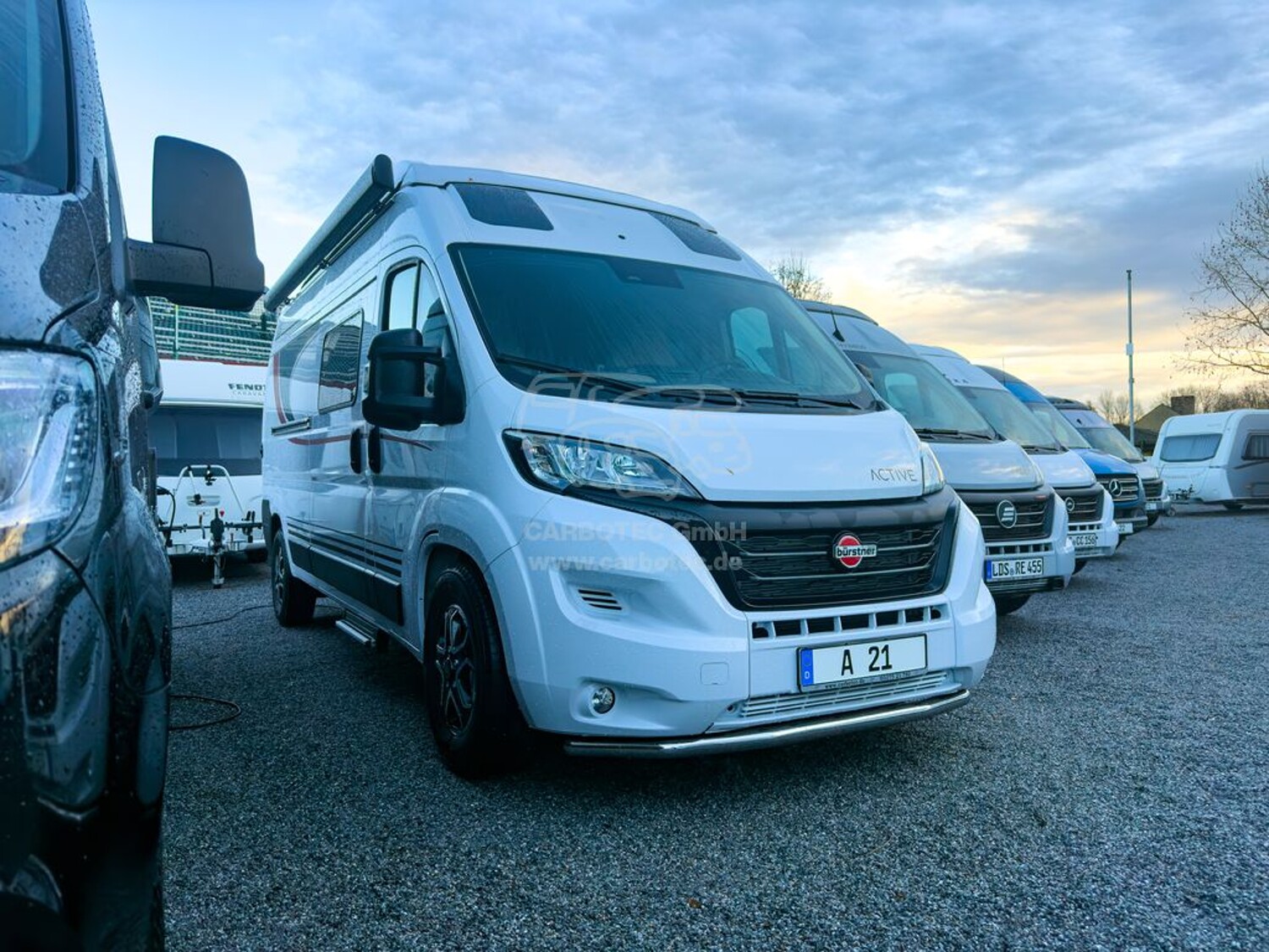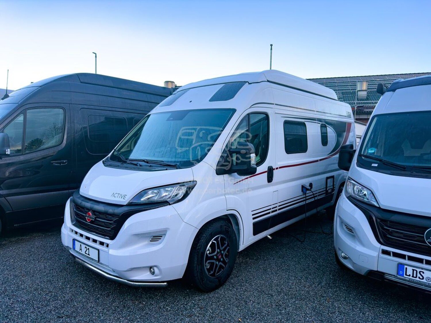 - Active Paket Eliseo (nur bei 3.500 kg): (Alufelgen 16 Zoll für 3.500 kg, Sonderproduktgrafik "Active", Polster mit eigener Steppung "Active", Spoilerschutzrohr)