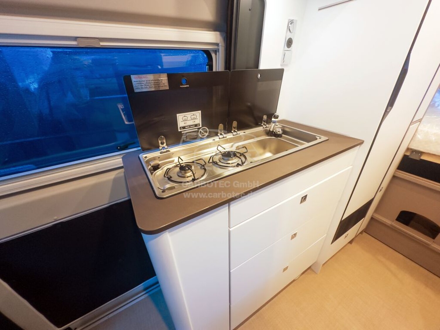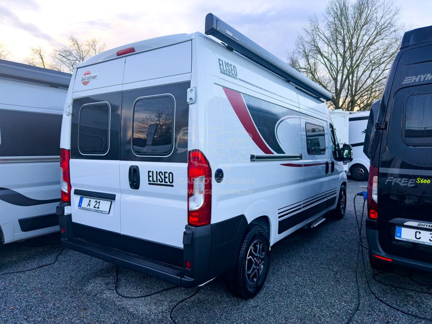 - Eliseo Paket (Markise 3,75m) für C 602, C 642 & C 644 (Hinweis: Das angegebene Gewicht des Paketes ist bereits ist in der Masse fahrbereitem Zustand des Fahrzeuges mit eingerechnet, Elektrische Einstiegsstufe, ausfahrbar, Fahrerhausverdunkelung, Cassettenplissees Front- und Seitenscheiben, Sonnenmarkise 3,75 m, anthrazit Schiene mit LED Beleuchtung und Wasserablaufrinne über der Schiebetüre, Fliegenschutzplissee für Schiebetür, Kleiderstange in Nasszelle)
