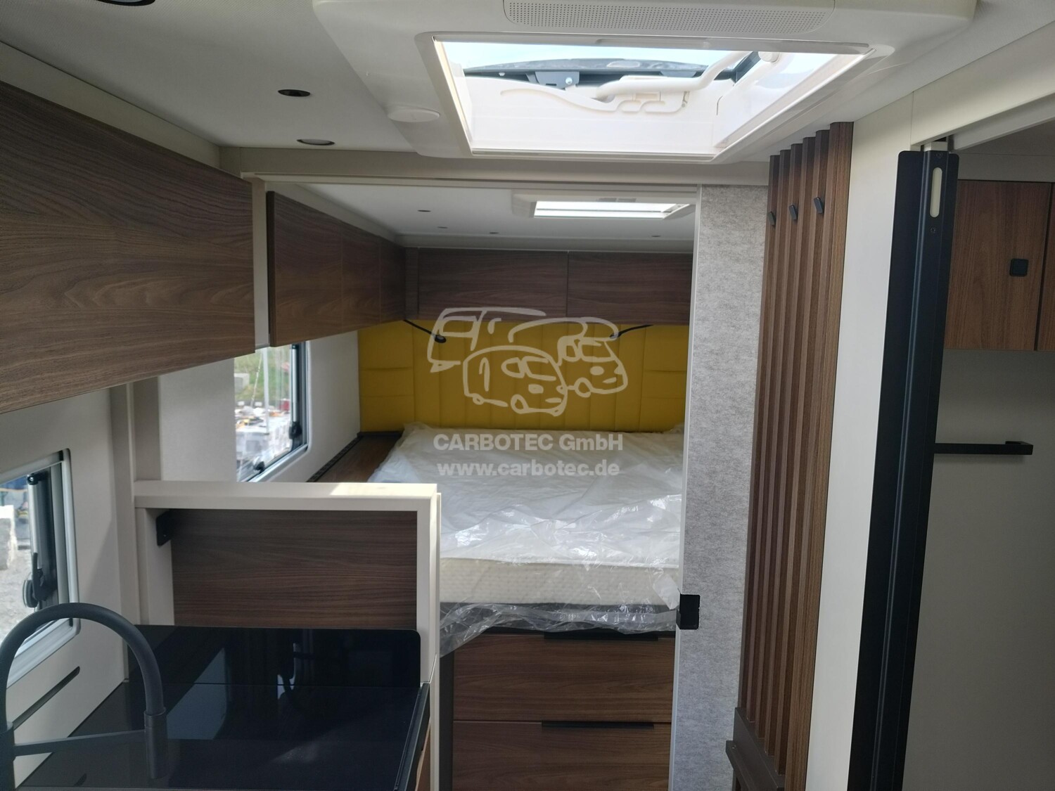 - Komfort-Paket Aufbau (Innenverkleidung stoffbezogen, Fahrerhausverdunkelung, Cassettenplissees Front- und Seitenscheiben, Filz-Schiebetür zwischen Schlaf- und Wohnbereich, Fliegenschutz Aufbautür, Zentralverriegelung Aufbautür, Komfortmatratze inkl. Froli-Schlafsystem für Heckbett(en), Dachfenster 50 x 70cm mit Verdunkelungsrollo und Fliegenschutz im Wohnbereich, Rahmenfenster, Ambiente-Beleuchtung)