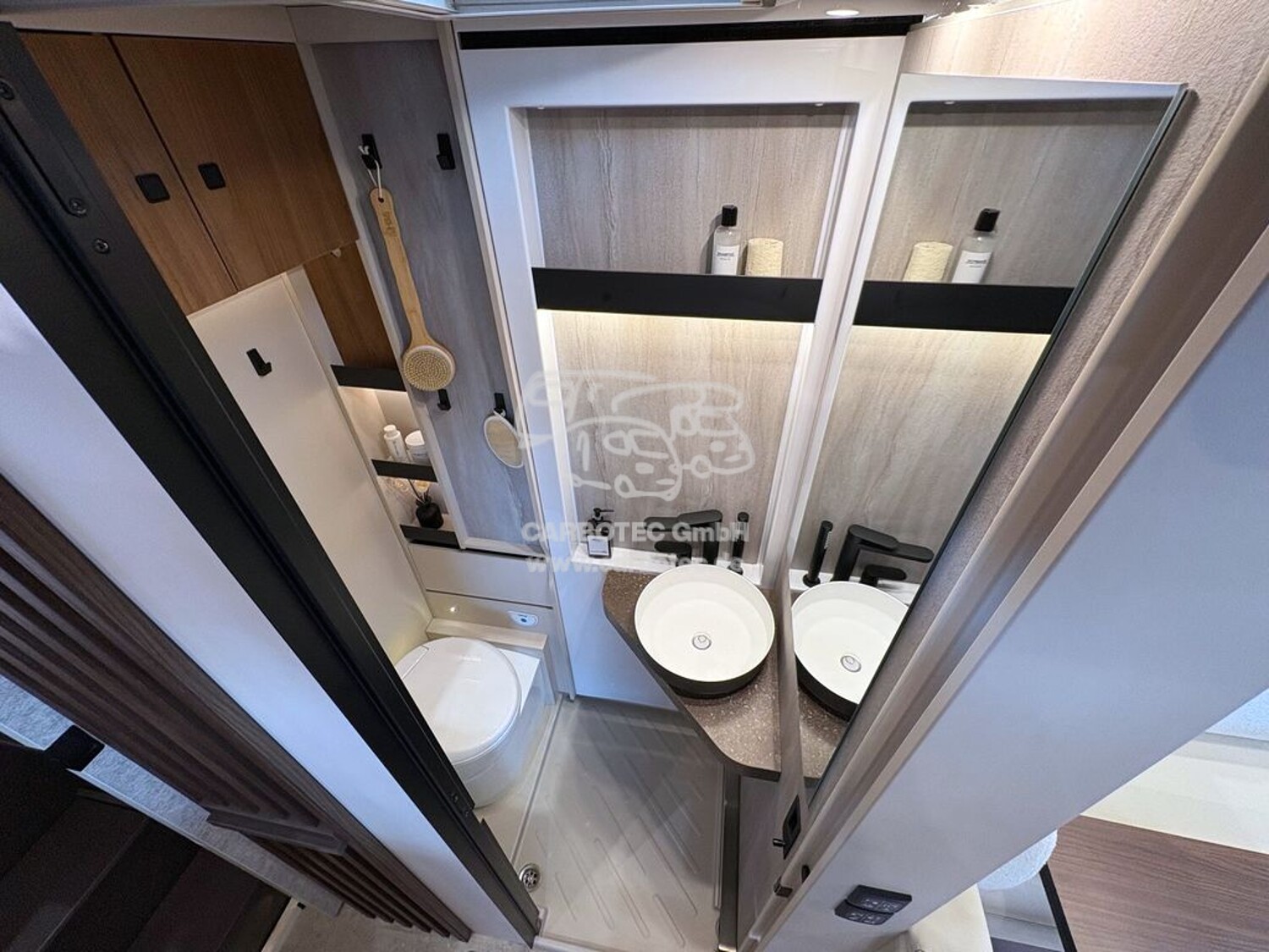 - Geräumige Dusche mit hinterleuchteten Ablagen
