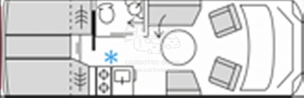 - Zwei Grundrisse: wahlweise mit Einzelbetten oder Queensbett im Heck (7.1-Modelle mit Hubbett über der Sitzgruppe (unsichtbar in der Decke integriert))