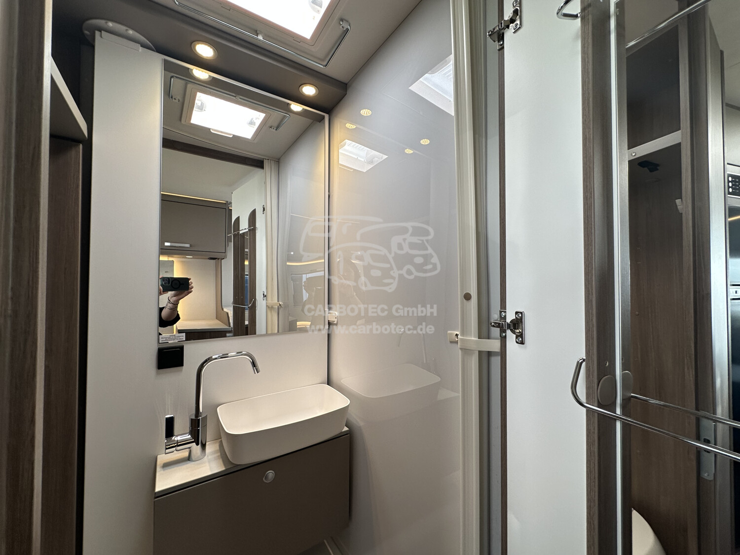 - Basic Paket (Panoramadachhaube über Sitzgruppe, Klarglasdachhaube 40 x 40 cm, Fliegengittertür (einteilig), Kabelvorbereitung für Rückfahrkamera, Komfort-Eingangstür mit Fenster und Verdunkelung, Bridge Light)