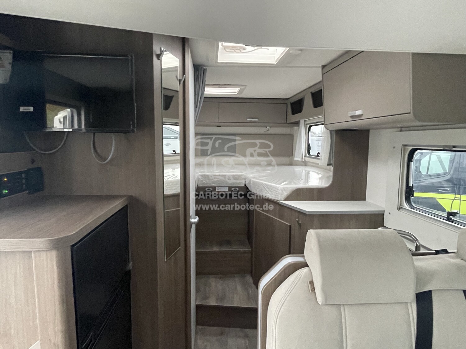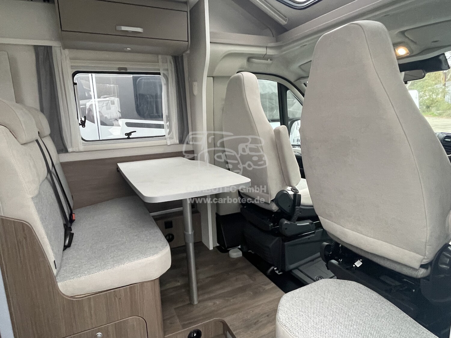 - pro Paket (Basic Paket, Stoßfänger lackiert, 16" Stahlfelgen für Light Chassis inkl. Radzierblenden, Faltverdunkelung Fahrerhaus, Fenster in Fronthaube, Großer Kühlschrank 156 l mit separatem Frosterfach 29 l, Abwassertank isoliert, 2. Außenstauraumklappe (Größe modellabhängig), Beklebung pro)