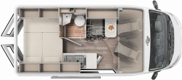 - Pro-Ausstattung: Optik Paket 1 (Stoßfänger lackiert, Skid-Plate glänzend schwarz, Nebelscheinwerfer), Optik Paket 2 (Lenkrad & Schaltknauf in Lederausführung, Armaturentafel mit Applikationen (Techno-Trim), 16" Alufelgen Bi-Color, Basic Paket (Dachhaube Midi-Heki 70x50cm über Sitzgruppe, Duschausstattung (Brauseknopf ausziehbar, Duschvorhang, Führungsschiene, Brausehalter), Dieseltank 90l, Faltverdunklung Fahrerhaus, Markise 3,25m, Beklebung pro