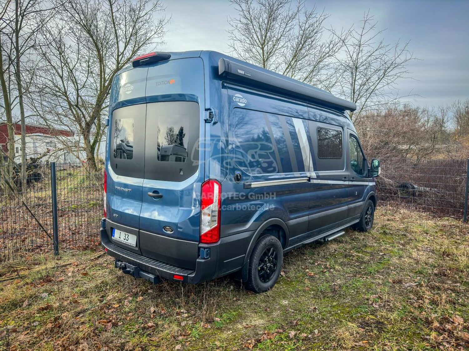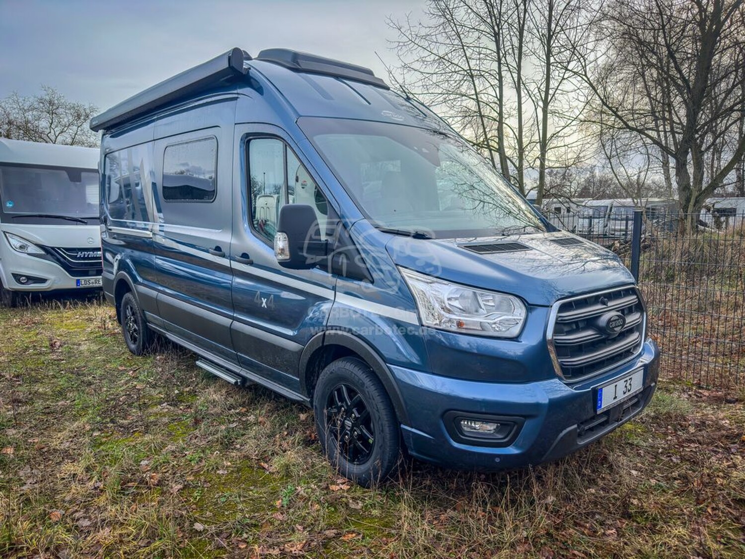 - EDITION24 Paket (Ford Transit 2,0l TDCi - 125 kW (170 PS) - EURO 6 - Allradantrieb, Chassisfarbe Chroma-Blau, Stoßfänger lackiert, 16" Alufelgen, Faltverdunkelung Fahrerhaus, Wohnwelt Grau, Rahmenfenster, Dachstauschrank mit Ambientebeleuchtung, Editionsabklebung, 4x4 Abklebung, Markise 3,5 m schwarz, Basic Paket, Chassis Paket)