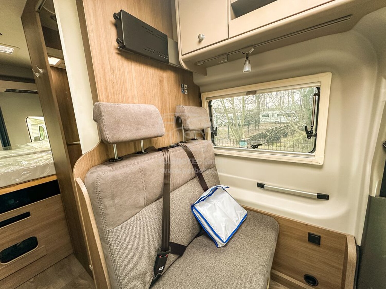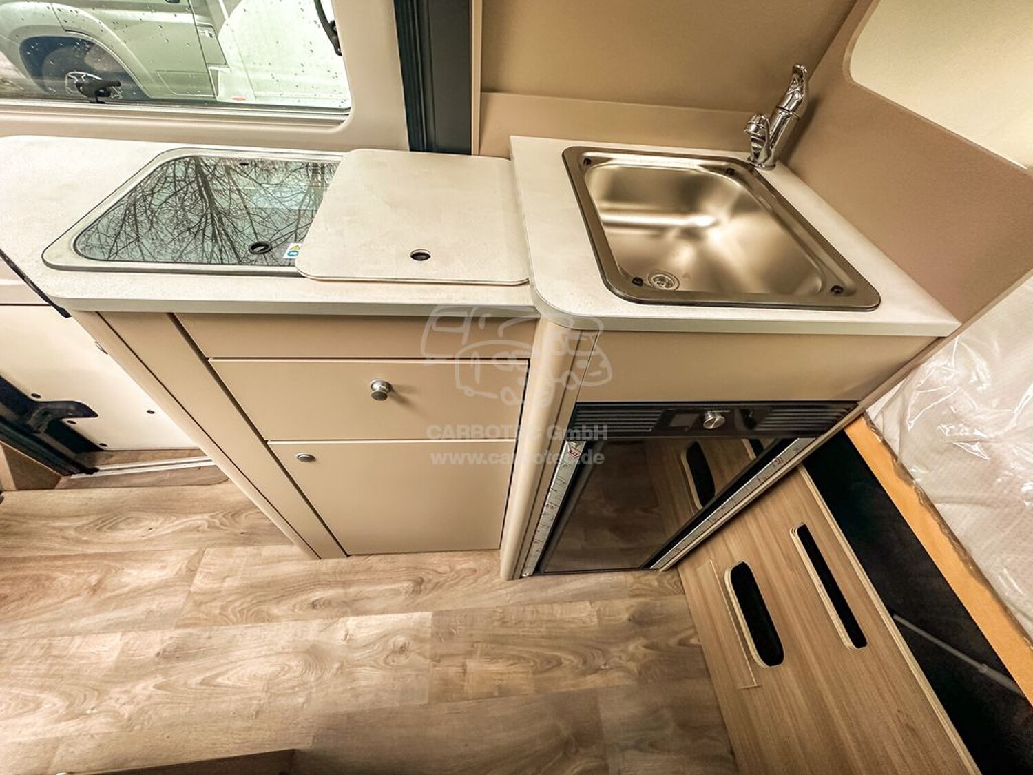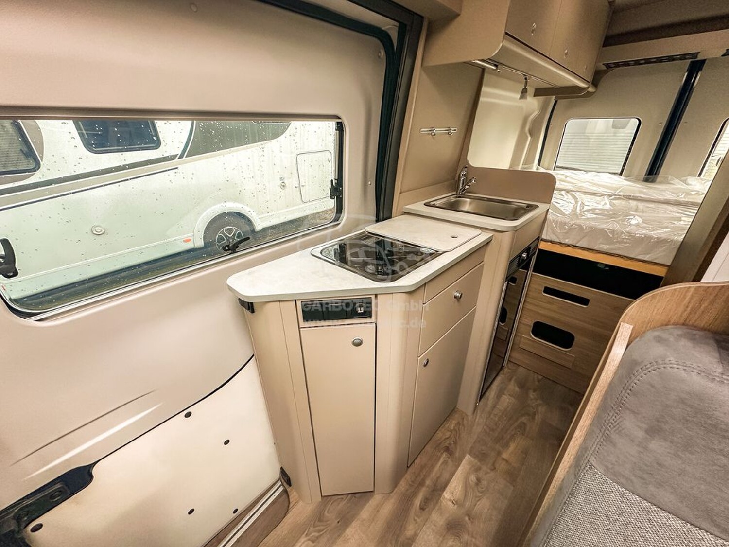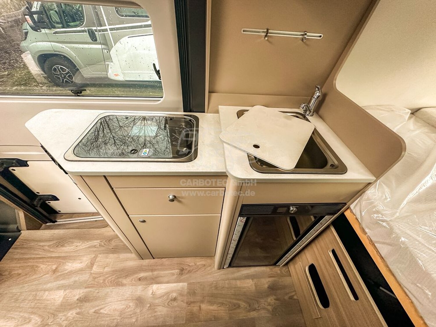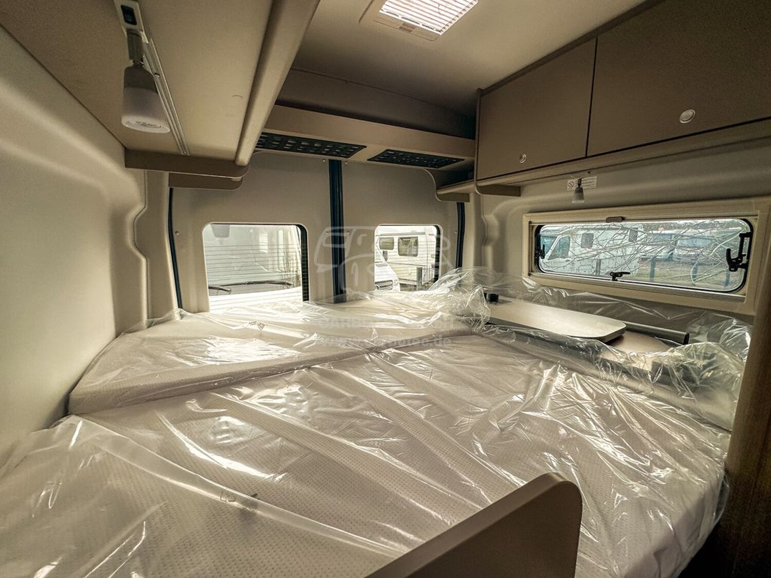 - Basic Paket (Dachhaube Midi- Heki 70 x 50 cm über Sitzgruppe, Duschausstattung (Brausekopf ausziehbar, Duschvorhang, Führungsschiene, Brausehalter), Fenster im Bad, Kleiderstange in der Nasszelle, Breite Einstiegsstufe, Drehplatte für Tischerweiterung an der Sitzgruppe, Kabelvorbereitung für Rückfahrkamera)