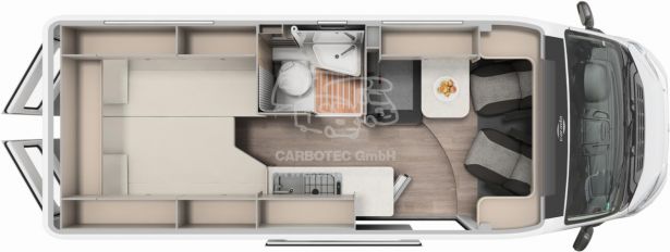 - pro+ Paket: (Optik Paket 1 - Stoßfänger lackiert, Optik Paket 2 - Alufelgen, Basic Paket, Dieseltank 90 l, Faltverdunkelung Fahrerhaus, Rahmenfenster, Markise 4 m (Schwarz), Beklebung pro+, LED-Beleuchtung integriert über den Dachschränken, Panoramafenster über Fahrer- und Beifahrersitz, Heckdachstauschrank umlaufend