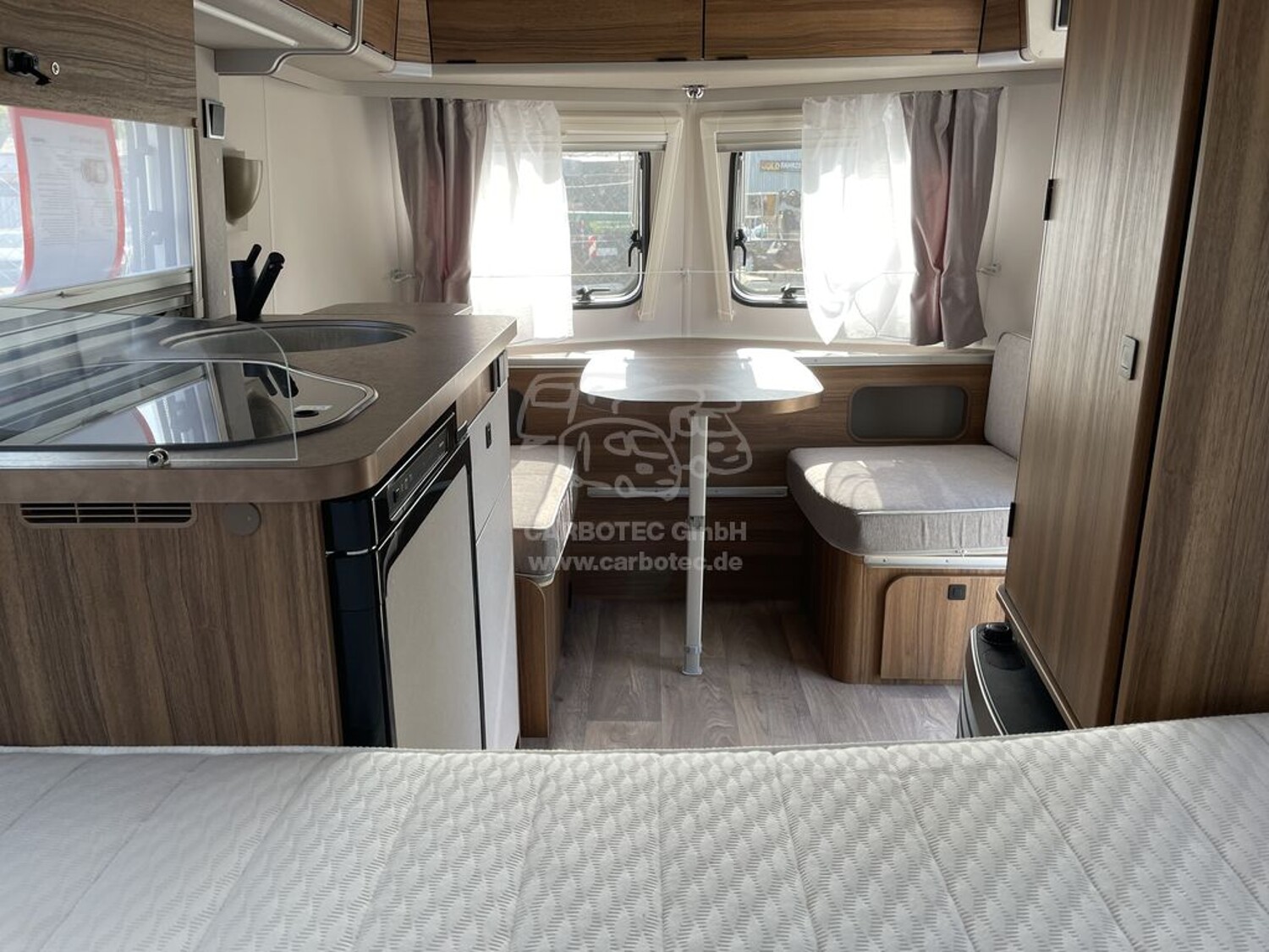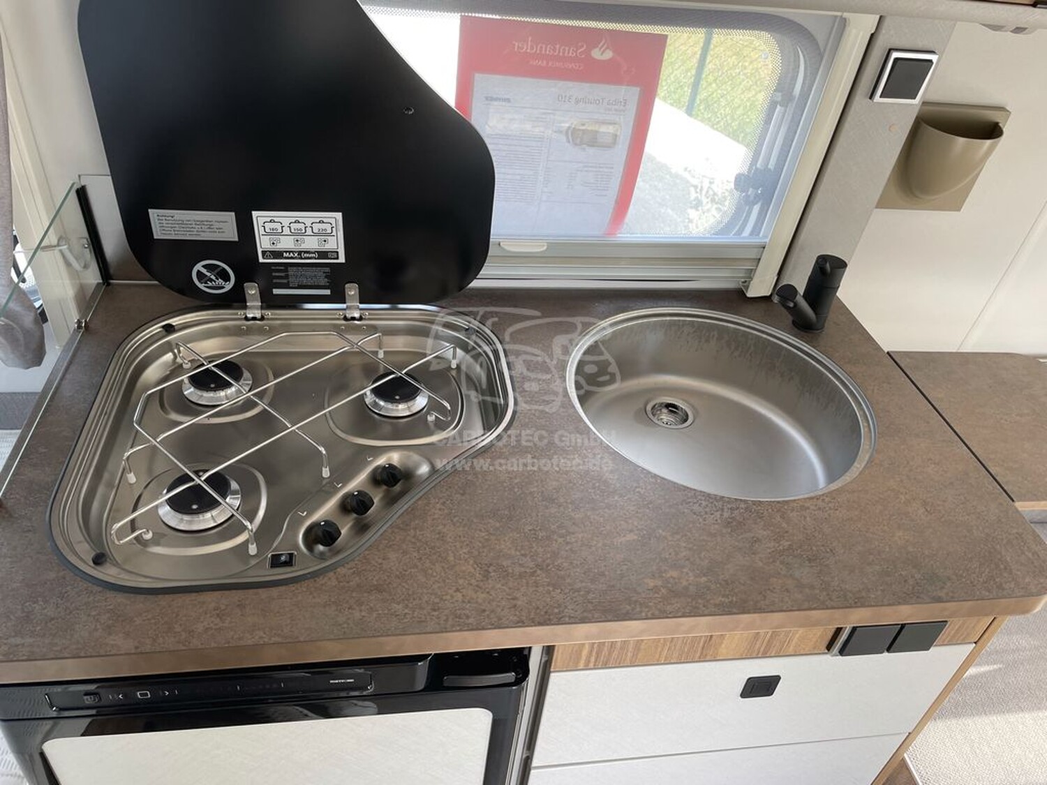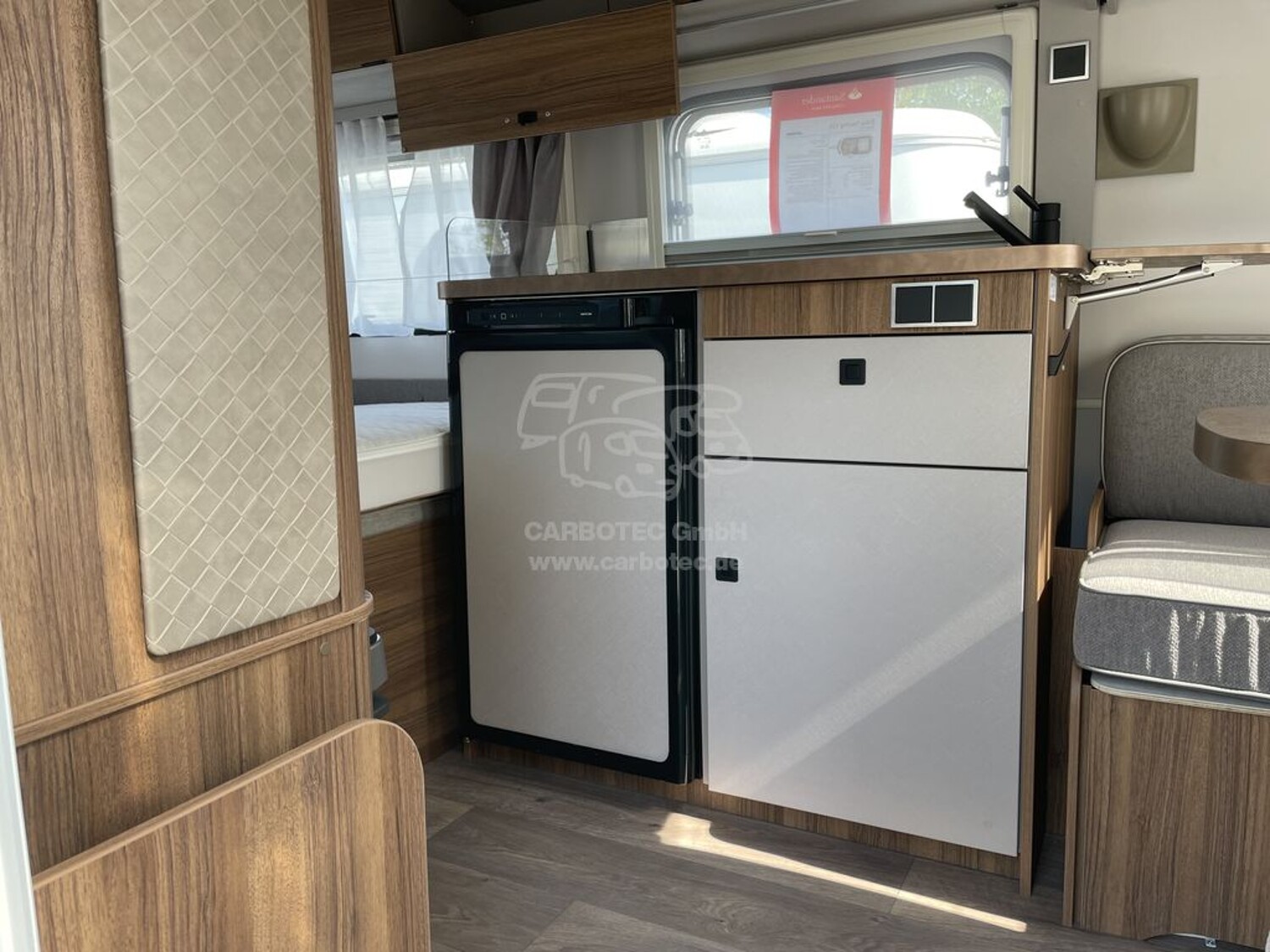- Komfort Paket (Fliegenschutz-Rolltür (gesamte Türhöhe), bedienfreundlich durch seitliche Führung, Komfort-Plissee-Rollos, Steckdosenpaket (2 x 230 V Steckdosen und 1 x USB-Doppelsteckdose), Spülenabdeckung mit Schneidebrett, Abfalleimer in Eingangstür integriert, Zusätzlicher Vergrößerungsspiegel mit Magnethalterung)