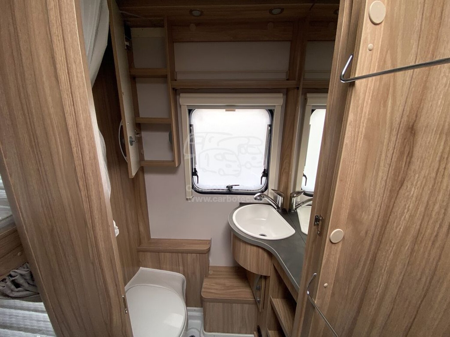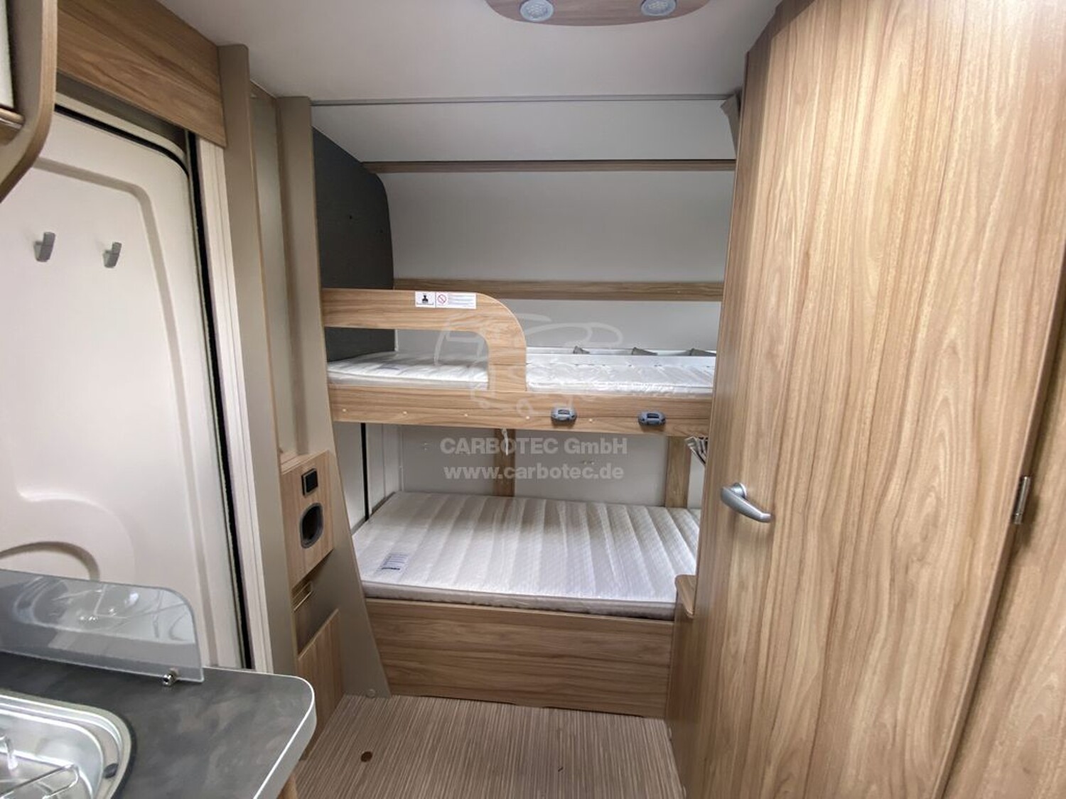 - Moving-Paket (Autarkpaket (95 Ah AGM-Aufbaubatterie, Ladegerät mit integriertem Booster), Fliegenschutz-Rolltür (gesamte Türhöhe), bedienfreundlich durch seitliche Führung, Deichsel-Fahrradträger Thule Caravan Superb für zwei Fahrräder, max. Traglast 60 kg (für E-Bikes geeignet), Abstützfuß (4 Stk.) für Caravanstützen: Verhindert Einsinken oder Wegrutschen der Stützen, Deichselstützrad mit integrierter Stützlastanzeige, 22 l Abwassertank, rollbar (Unterbringung im Gaskasten), Steckdosenpaket (2 x 230 V Zusatzsteckdosen im Wohnraum und in der Küche))