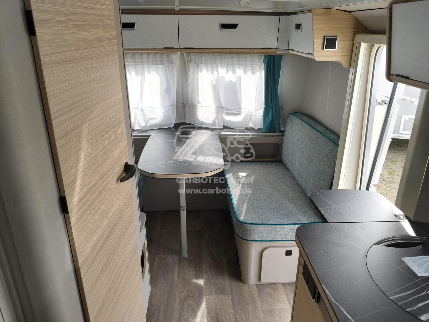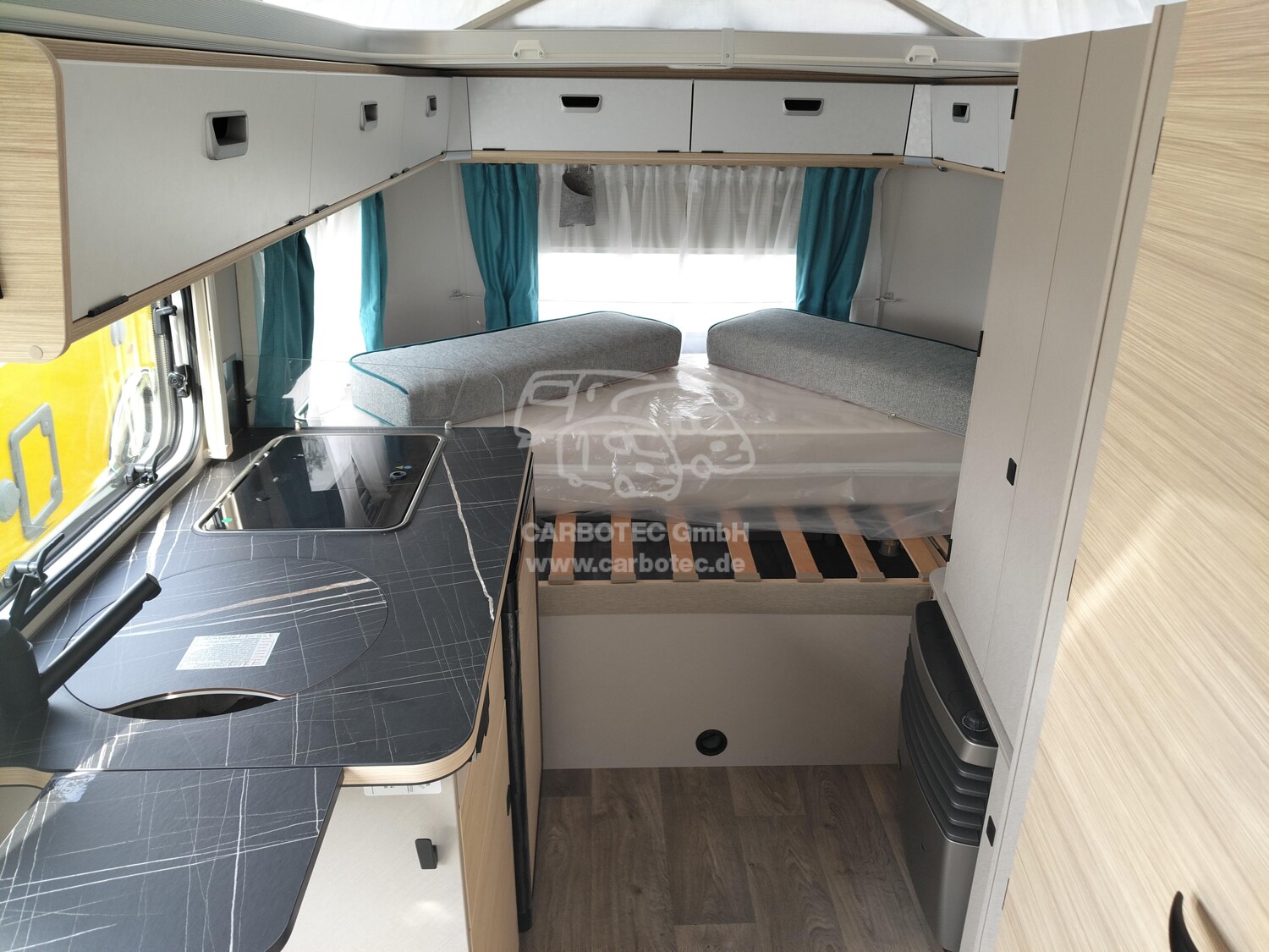 - Komfort-Paket (Fliegenschutz-Rolltür (gesamte Türhöhe), bedienfreundlich durch seitliche Führung, Komfort-Plissee-Rollos, Steckdosenpaket (2 x 230 V Steckdosen und 1 x USB-Doppelsteckdose), Abfalleimer in Eingangstür integriert, Spülenabdeckung mit Schneidebrett für Edelstahlspüle, Zusätzlicher Vergrößerungsspiegel mit Magnethalterung)