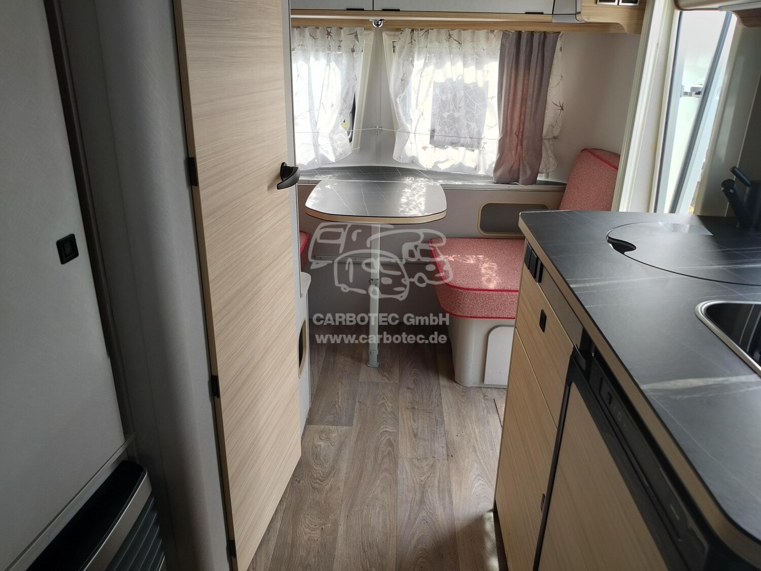 - Komfort-Paket (Fliegenschutz-Rolltür (gesamte Türhöhe), bedienfreundlich durch seitliche Führung, Komfort-Plissee-Rollos, Steckdosenpaket (2 x 230 V Steckdosen und 1 x USB-Doppelsteckdose), Abfalleimer in Eingangstür integriert, Spülenabdeckung mit Schneidebrett für Edelstahlspüle, Zusätzlicher Vergrößerungsspiegel mit Magnethalterung)