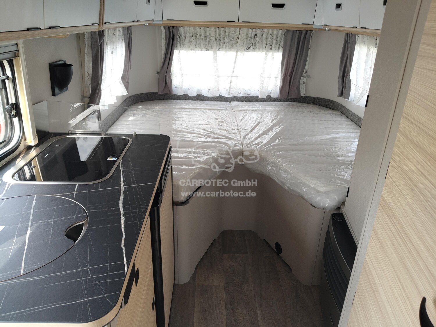 - Komfort-Paket (Fliegenschutz-Rolltür (gesamte Türhöhe), bedienfreundlich durch seitliche Führung, Komfort-Plissee-Rollos, Steckdosenpaket (2 x 230 V Steckdosen und 1 x USB-Doppelsteckdose), Abfalleimer in Eingangstür integriert, Spülenabdeckung mit Schneidebrett für Edelstahlspüle, Zusätzlicher Vergrößerungsspiegel mit Magnethalterung)