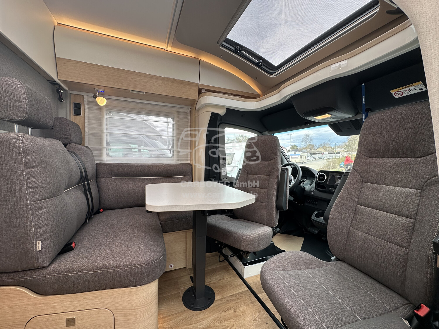 - Bettenbau für Komfort L-Sitzgruppe inkl. Zusatzpolster und absenkbarem Tisch unter Einbeziehung des Fahrersitzes