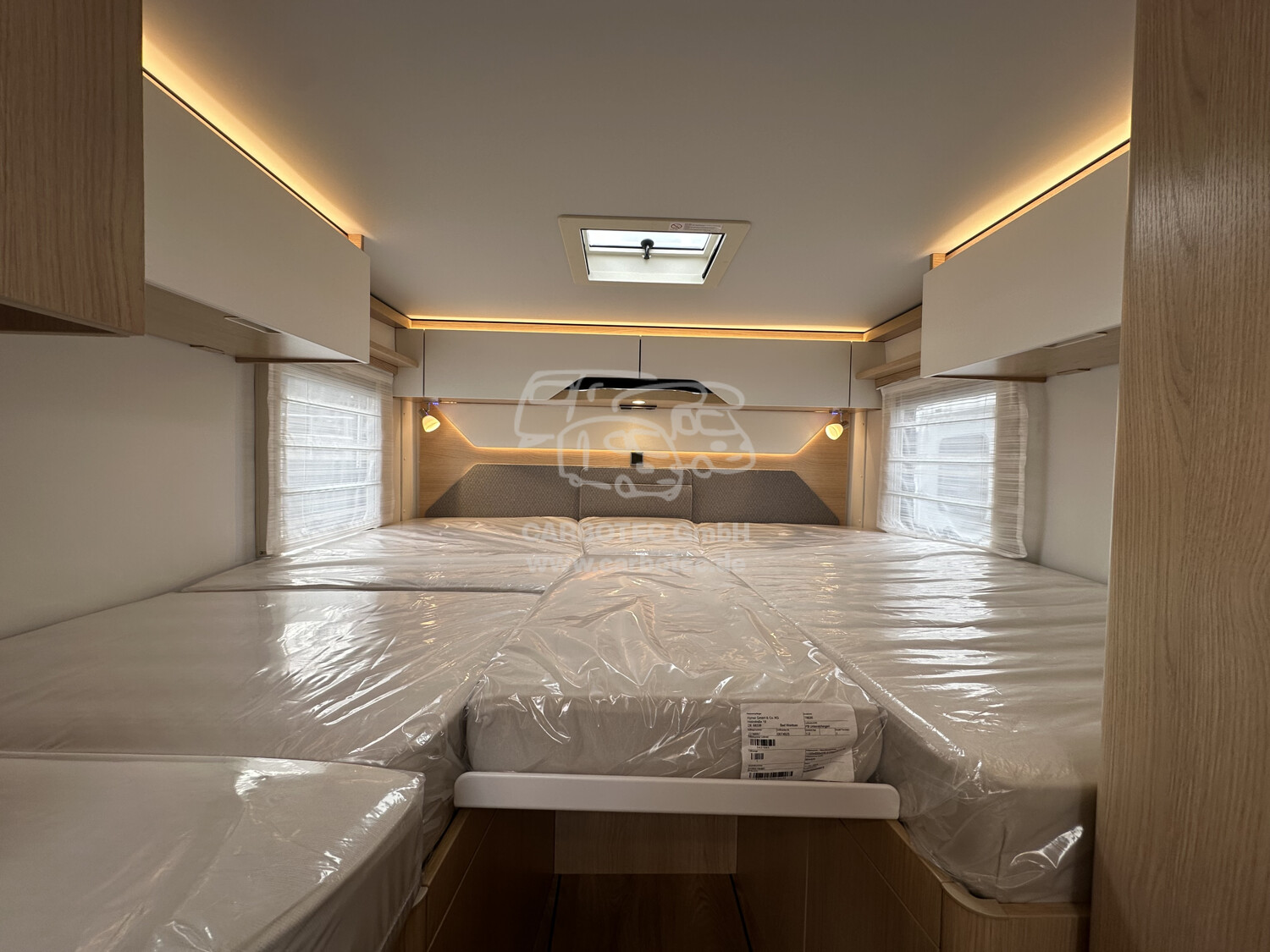 - Wohnkomfort-Paket 4 (Einlegeboden mit Holzoberfläche, Spannbettlaken nach Maß für Heckbetten individuell an Matratzenkonturen angepasst, 4 Kissen mit Bezug, Ambient-Light-System: Mehr-Ebenen Lichtsystem mit dynamischer und individueller Steuerung der Beleuchtung (inkl. Lichttemperatur) sowie stimmungsvoller Sockelbeleuchtung, 4 x 230 V / 1 x 12 V / 1 x Doppel-USB Zusatzsteckdosen (inkl. Küchenwand-Verkleidung))