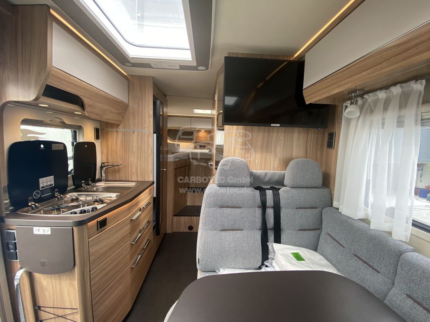 - Bettenbau für Komfort L-Sitzgruppe inkl. Zusatzpolster und absenkbarem Tisch unter Einbeziehung des Fahrersitzes