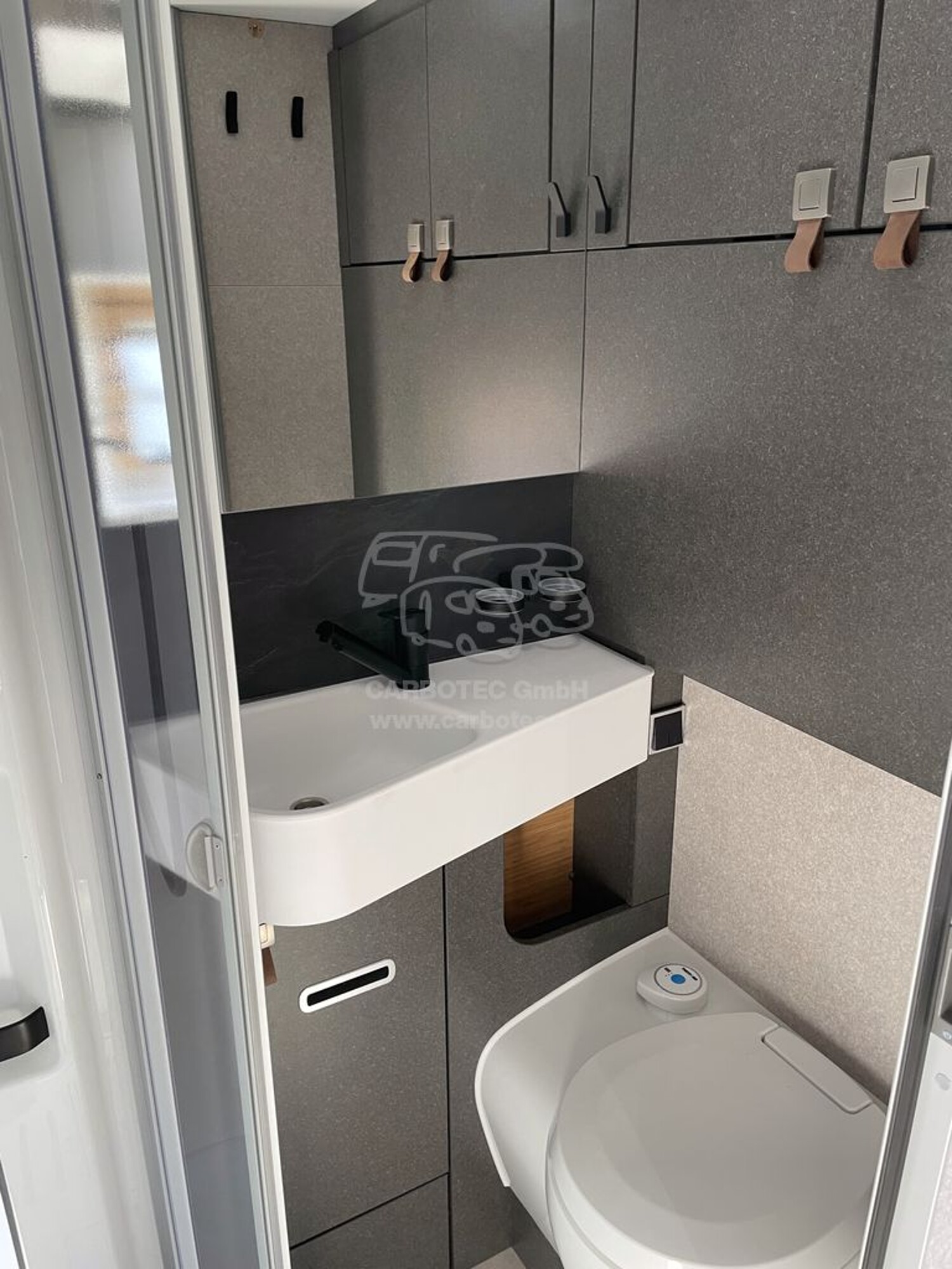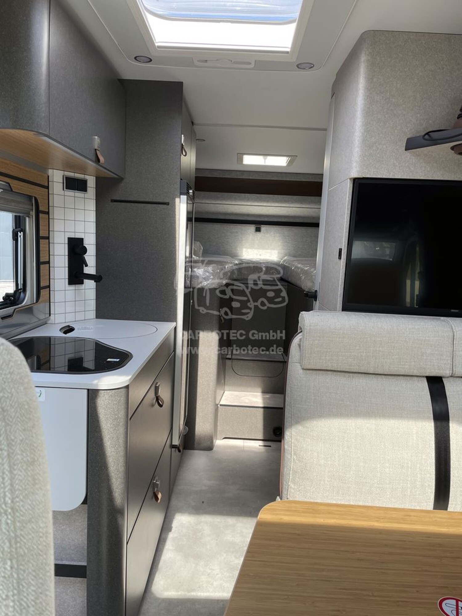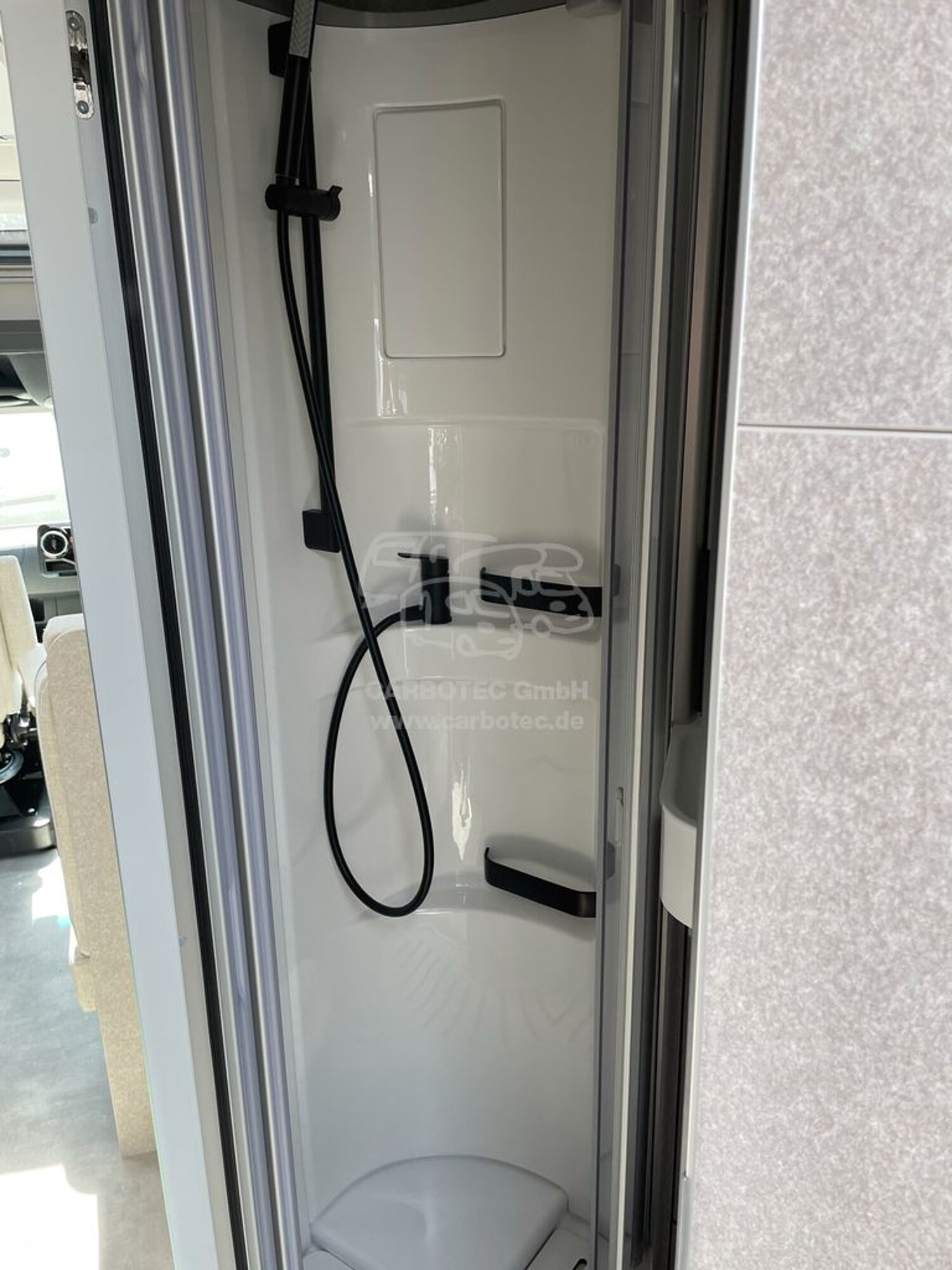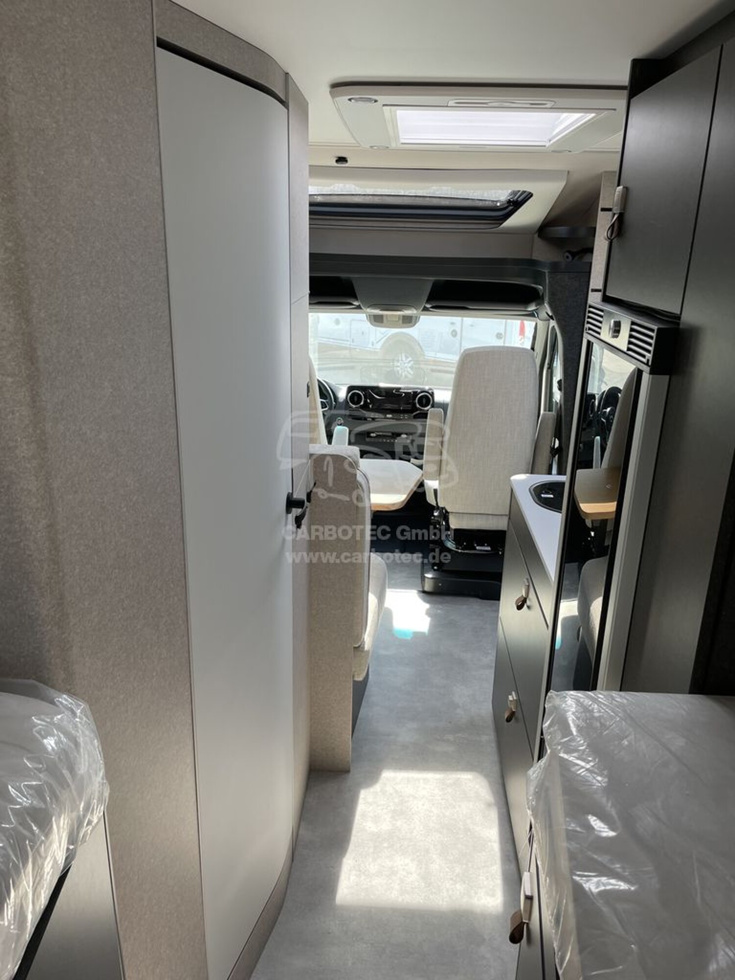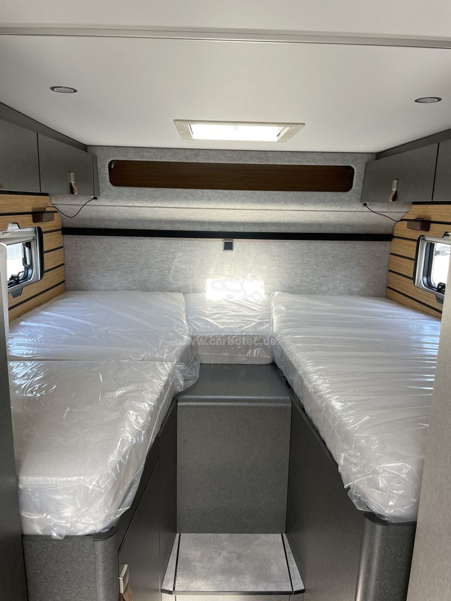 - Wohnkomfort-Paket 4 (Schlafsystem mit Tellerfederrost für Heckbett(en), Spannbettlaken nach Maß für Heckbetten individuell an Matratzenkonturen angepasst, Filzverkleidung in Heckgarage, Einlegeboden in der Dusche für ebenen Laufboden, 4 Kissen mit Bezug, Ambient-Light-System: Mehr-Ebenen Lichtsystem mit dynamischer und individueller Steuerung der Beleuchtung (inkl. Lichttemperatur) sowie stimmungsvoller Sockelbeleuchtung, Lichtpaket (Multifunktionale Pendelleuchte sowie eine Ambiente-Leseleuchte für die Multifunktionswände), 4 x 230 V / 1 x 12 V Zusatzsteckdosen)