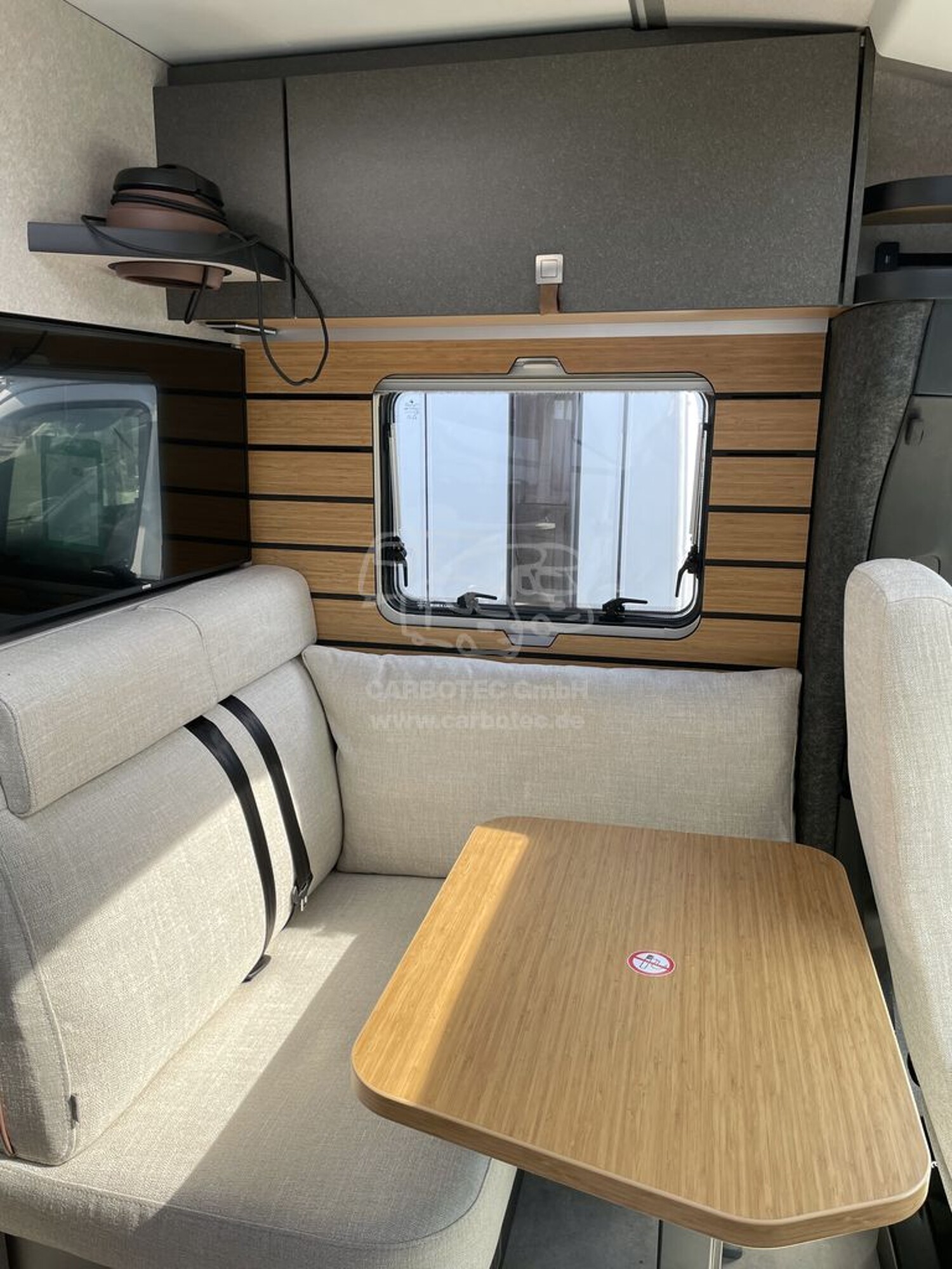 - Bettenbau für Komfort L-Sitzgruppe inkl. Zusatzpolster und absenkbarem Tisch unter Einbeziehung des Fahrersitzes