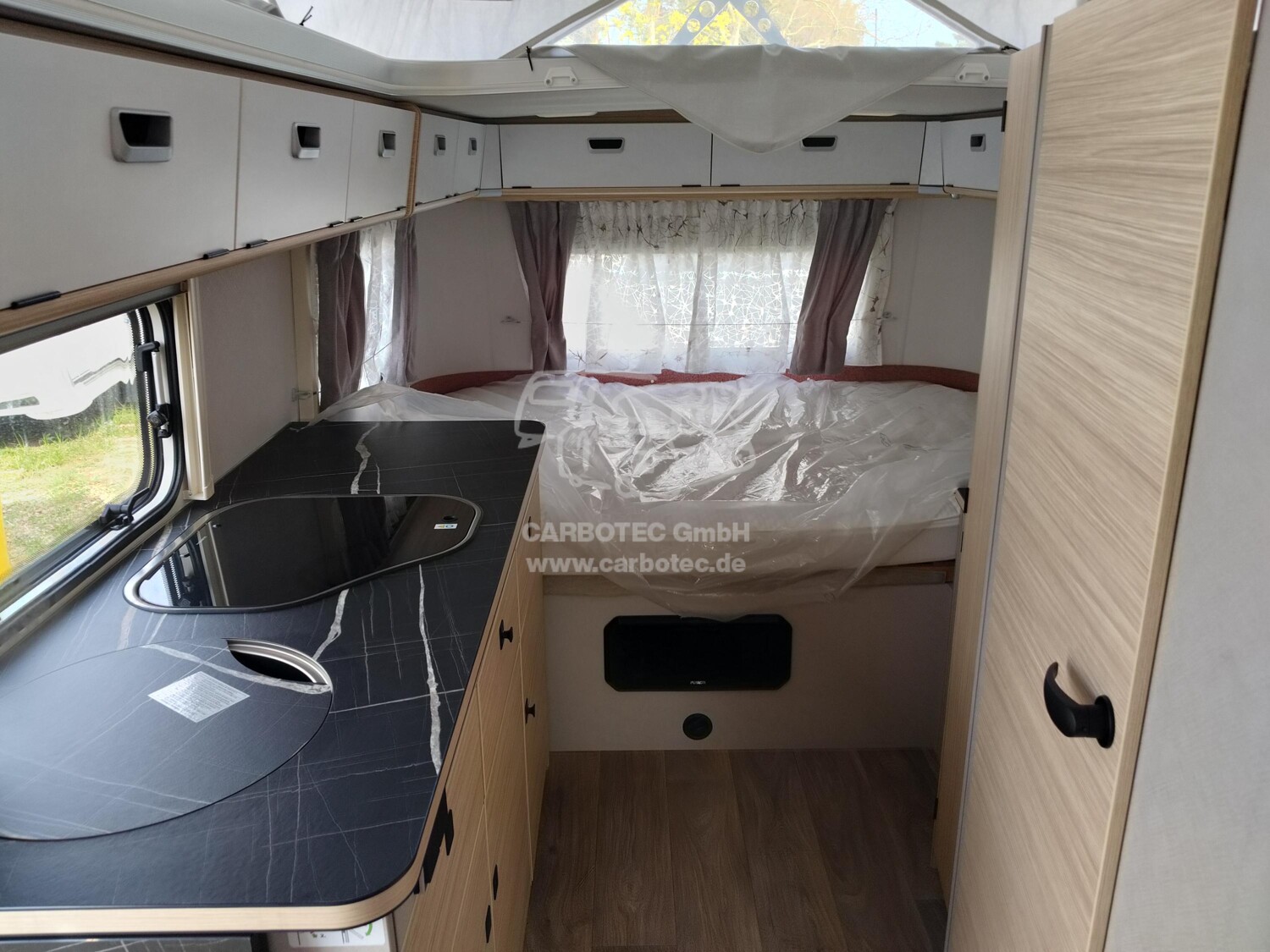 - Komfort-Paket (Fliegenschutz-Rolltür (gesamte Türhöhe), bedienfreundlich durch seitliche Führung, Komfort-Plissee-Rollos, Steckdosenpaket (2 x 230 V Steckdosen und 1 x USB-Doppelsteckdose), Abfalleimer in Eingangstür integriert, Spülenabdeckung mit Schneidebrett für Edelstahlspüle, Zusätzlicher Vergrößerungsspiegel mit Magnethalterung)