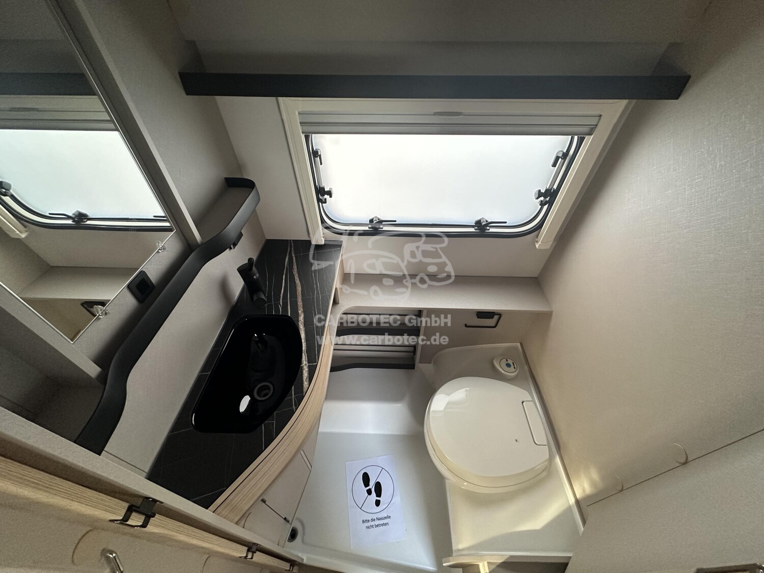 - Komfort-Paket (Fliegenschutz-Rolltür (gesamte Türhöhe), bedienfreundlich durch seitliche Führung, Komfort-Plissee-Rollos, Steckdosenpaket (2 x 230 V Steckdosen und 1 x USB-Doppelsteckdose), Abfalleimer in Eingangstür integriert, Spülenabdeckung mit Schneidebrett für Edelstahlspüle, Zusätzlicher Vergrößerungsspiegel mit Magnethalterung)