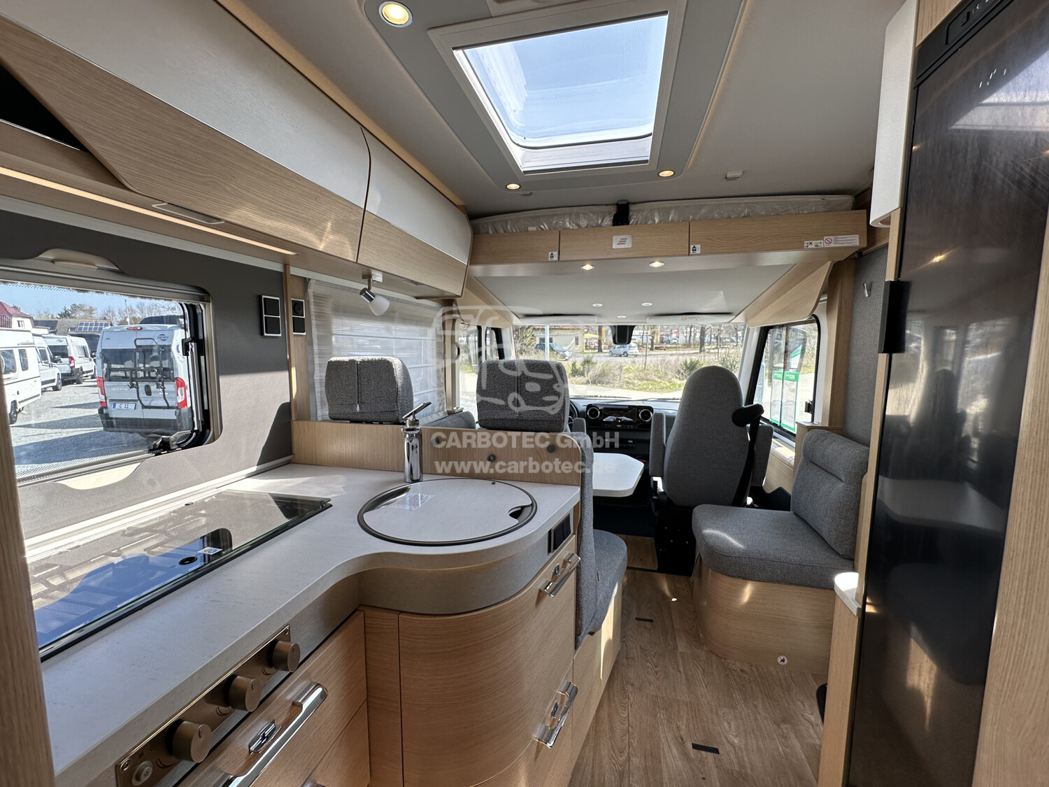 - Ausstattungslinie Premium (Tempomat inkl. Lenkrad-Multifunktionstasten, Multifunktionslenkrad, Elektrische Parkbremse, Verstärkte Vorderachse, Vorrüstung DAB Radio, Automatikgetriebe 9G-TRONIC inkl. Hold-Funktion, MBUX 10,25" Multimedia System inkl. Navigation, Sprachsteuerung, Lenkrad-Multifunktionstasten, DAB+, Touchscreen und Rückfahrkamera, Lederlenkrad (bei Automatikgetriebe), Aktiver Abstands-Assistent DISTRONIC PLUS inkl. Lenkrad-Multifunktionstasten, Kombiinstrument mit Farbdisplay Mercedes-Benz, Akustik-Paket Mercedes-Benz, HYMER Premium Voll-LED Scheinwerfer, Ablage für Smartphones inkl. wireless charging Funktion mit Ladestandsanzeige, Ladepaket Instrumententafel mit 2 x USB-C Stecker 5V / 1x 12V-Steckdose, Vollautomatische Klimaanlage THERMOTRONIC inkl. Regensensor)