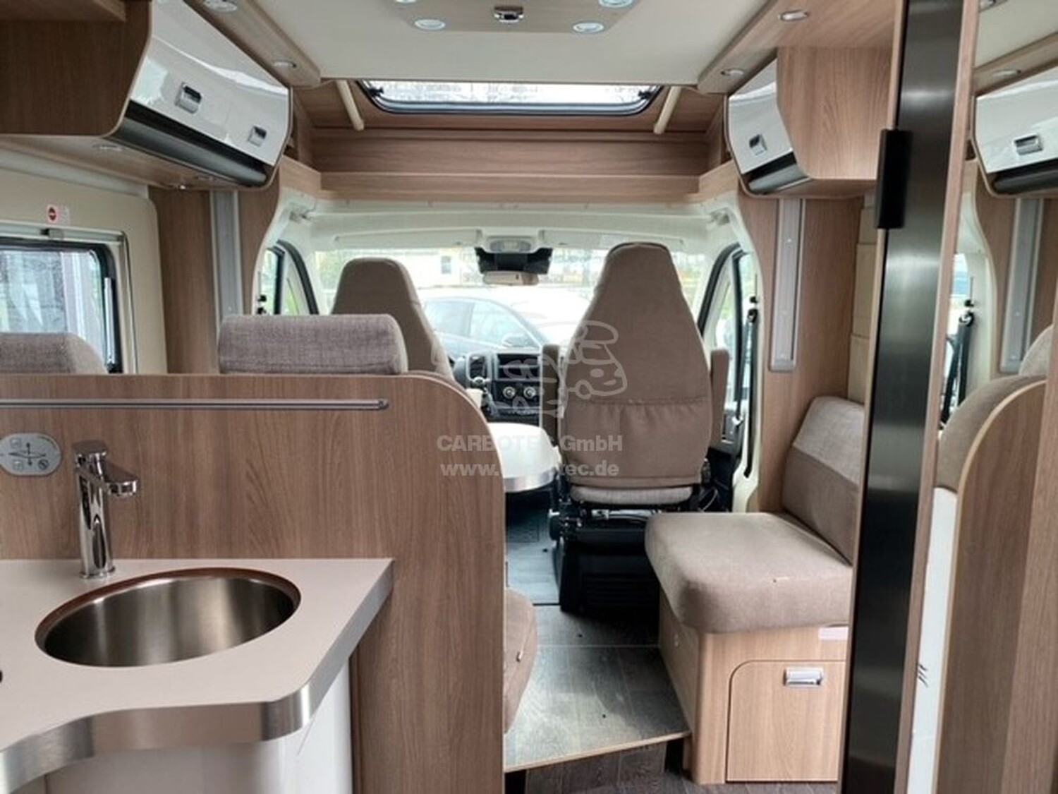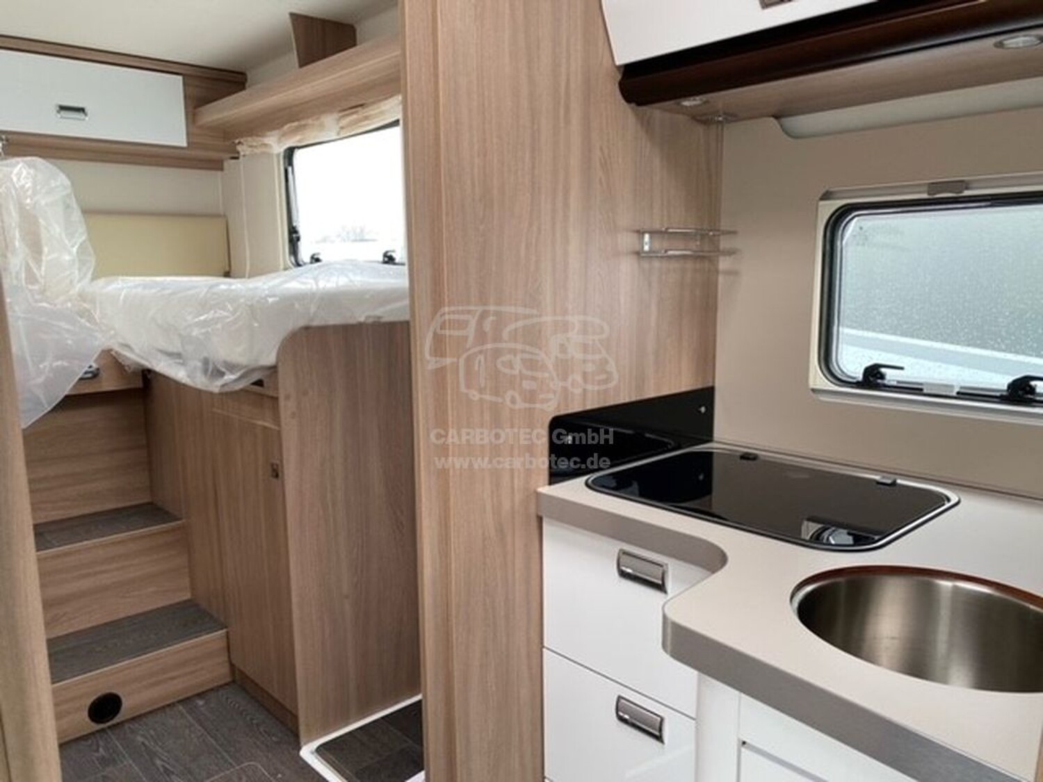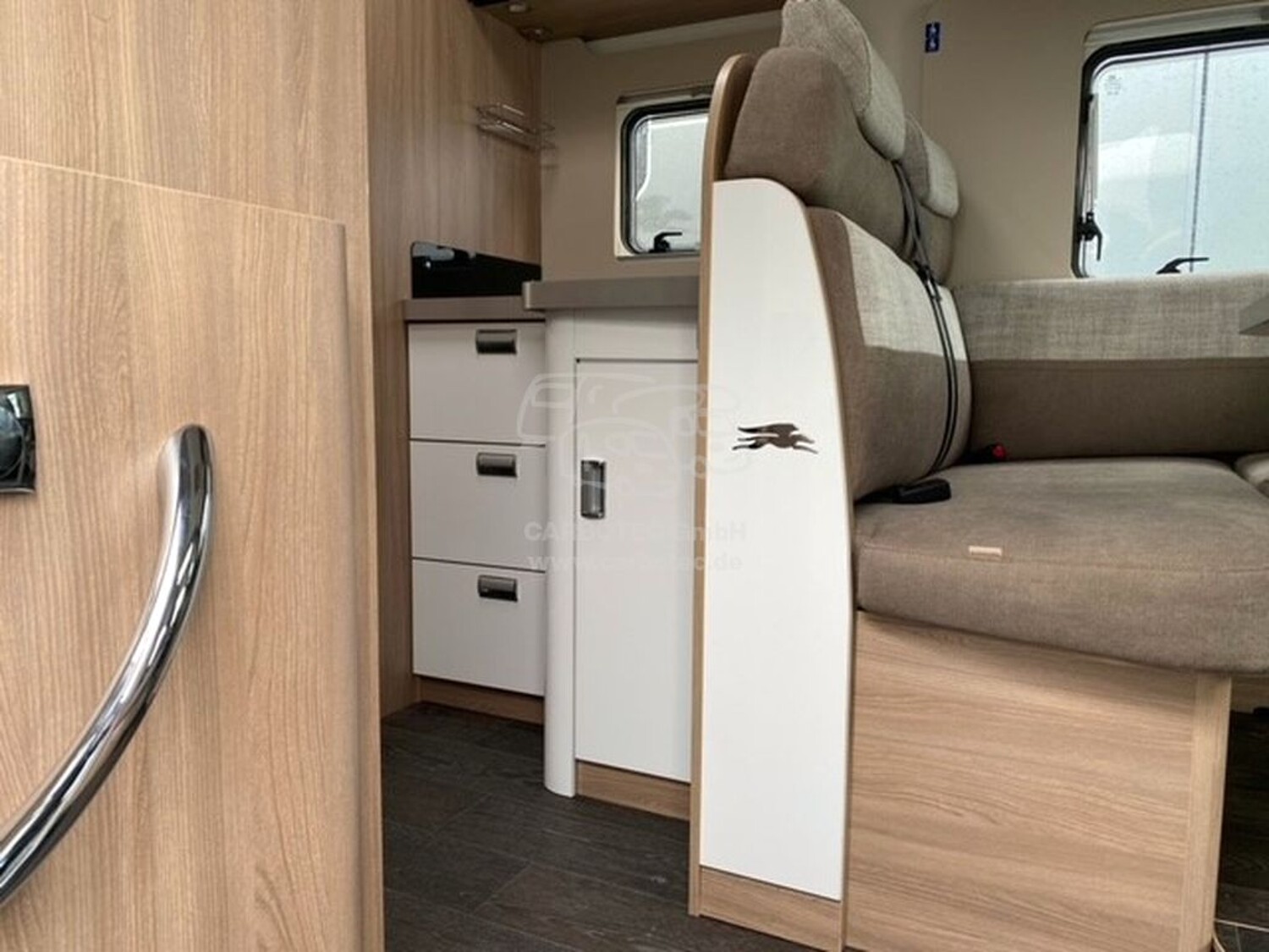 - Komfort Paket Kosmo (Holzeinlage für Duschwanne, Teppichboden im Fahrerhaus und Fußmatte im Wohnraum, Fenster im Bad, Abwassertank, isoliert)