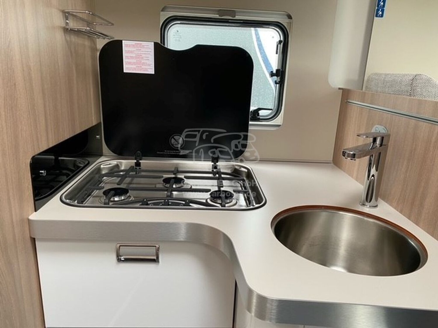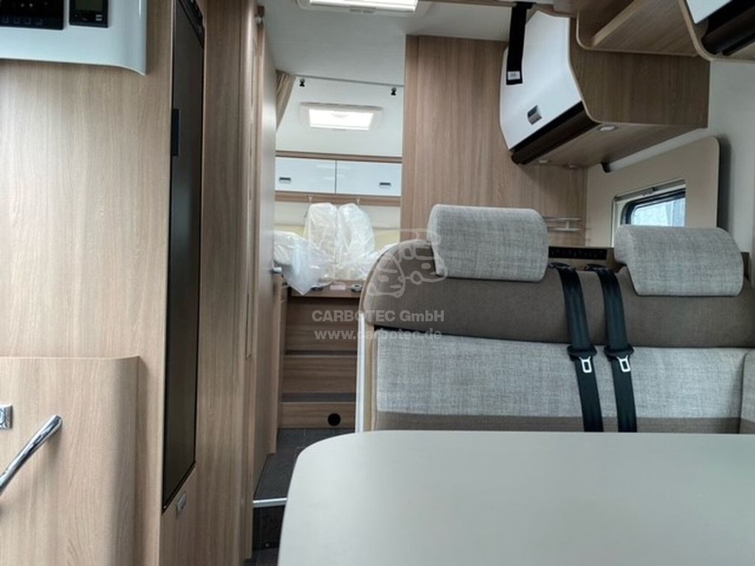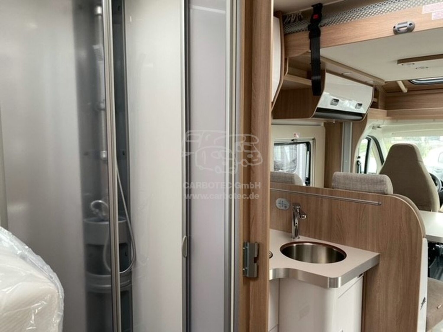 - Komfort Paket Kosmo (Holzeinlage für Duschwanne, Teppichboden im Fahrerhaus und Fußmatte im Wohnraum, Fenster im Bad, Abwassertank, isoliert)