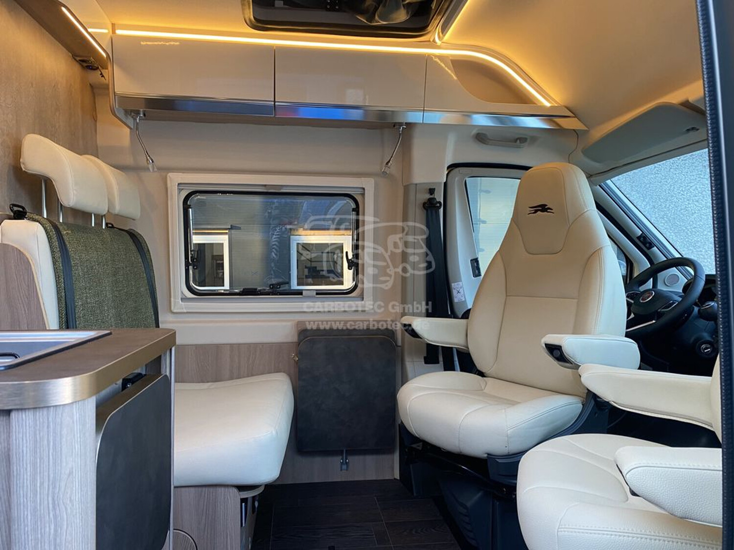 - Inklusiv Paket - Ecovip Camper Van (Elektrische Trittstufe (Aufbautür), Schiebetür mit Fliegengitter, Verdunklungsplissee Fahrerhaus (für Front- und Seitenscheiben), Panorama Dachluke Midi-Heki (nicht in Verbindung mit optionalem Schlafdach), Verzurrsystem im Ladebereich, Doppelboden im Heck, Vorbereitung Rückfahrkamera, Wärmedämmung Hecktüren und Schiebetür, Innendachverkleidung in Stoff, Abwassertank, isoliert, Abwassertank, beheizt, Fenster im Bad, Fenster seitlich links, Dimmbare Beleuchtung, LED-Außenleuchte und Raintech-System über Schiebetür, USB-Anschlüsse im Wohnbereich (2 Stück) und im Schlafzimmer (2 Stück), TV-Vorbereitung mit 12/220 V-Anschluss oberhalb Sitzbank mit indirekter Beleuchtung, Teppichboden im Fahrerhaus und Fußmatte im Wohnraum, Holzeinlage für Duschwanne, Küchenausstattung: zusätzl. Arbeitsfläche seitlich, Hängeschrankklappen weiß glänzend, seitliche Ablagefächer mit Beleuchtung am Eingang, Sitzgruppenbank mit Relaxposition)