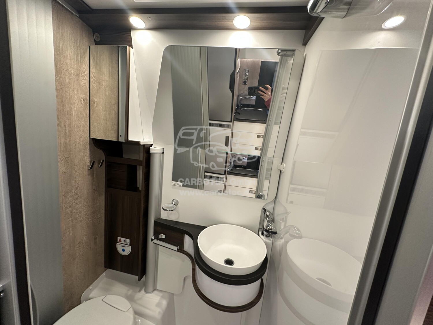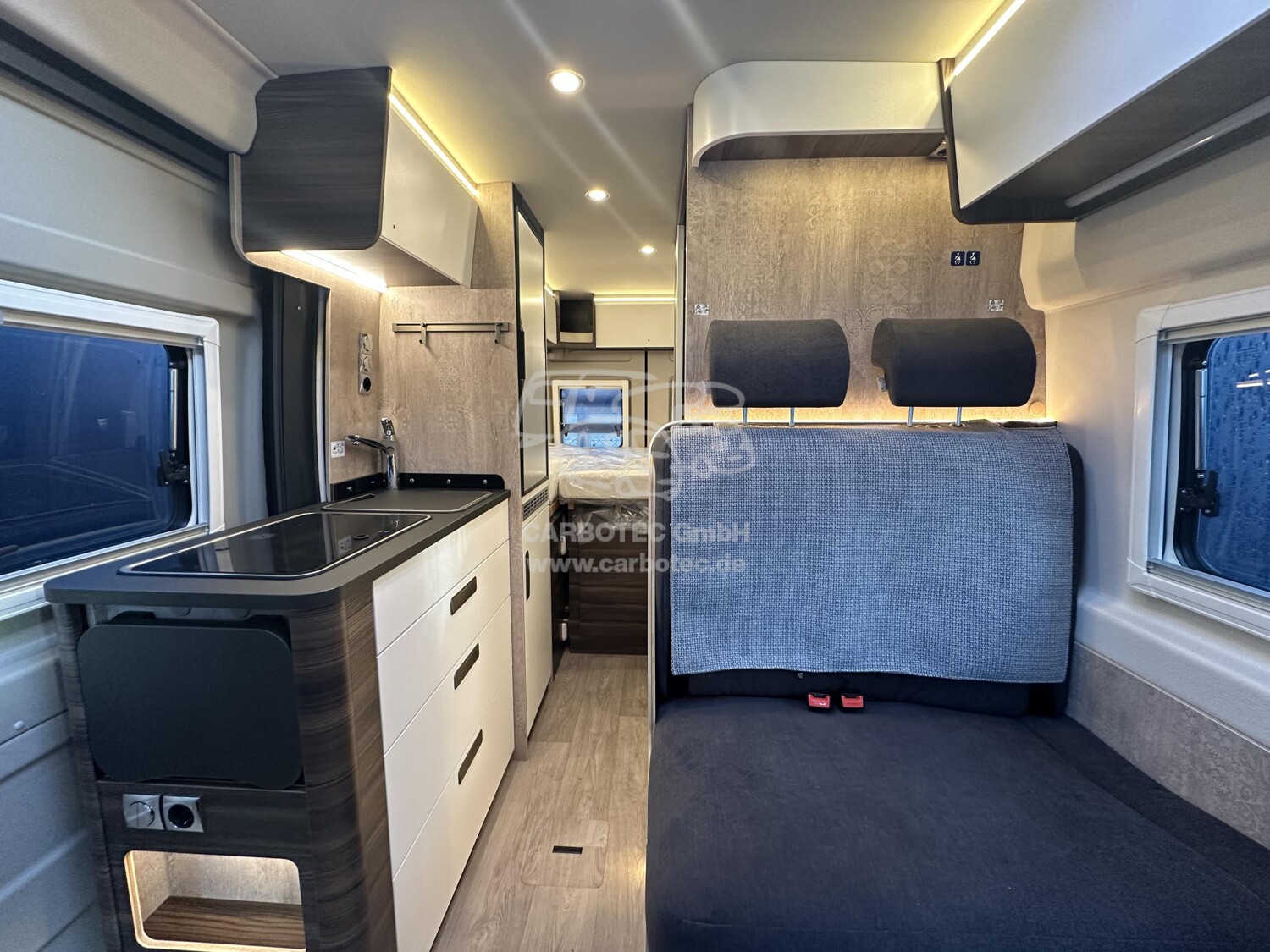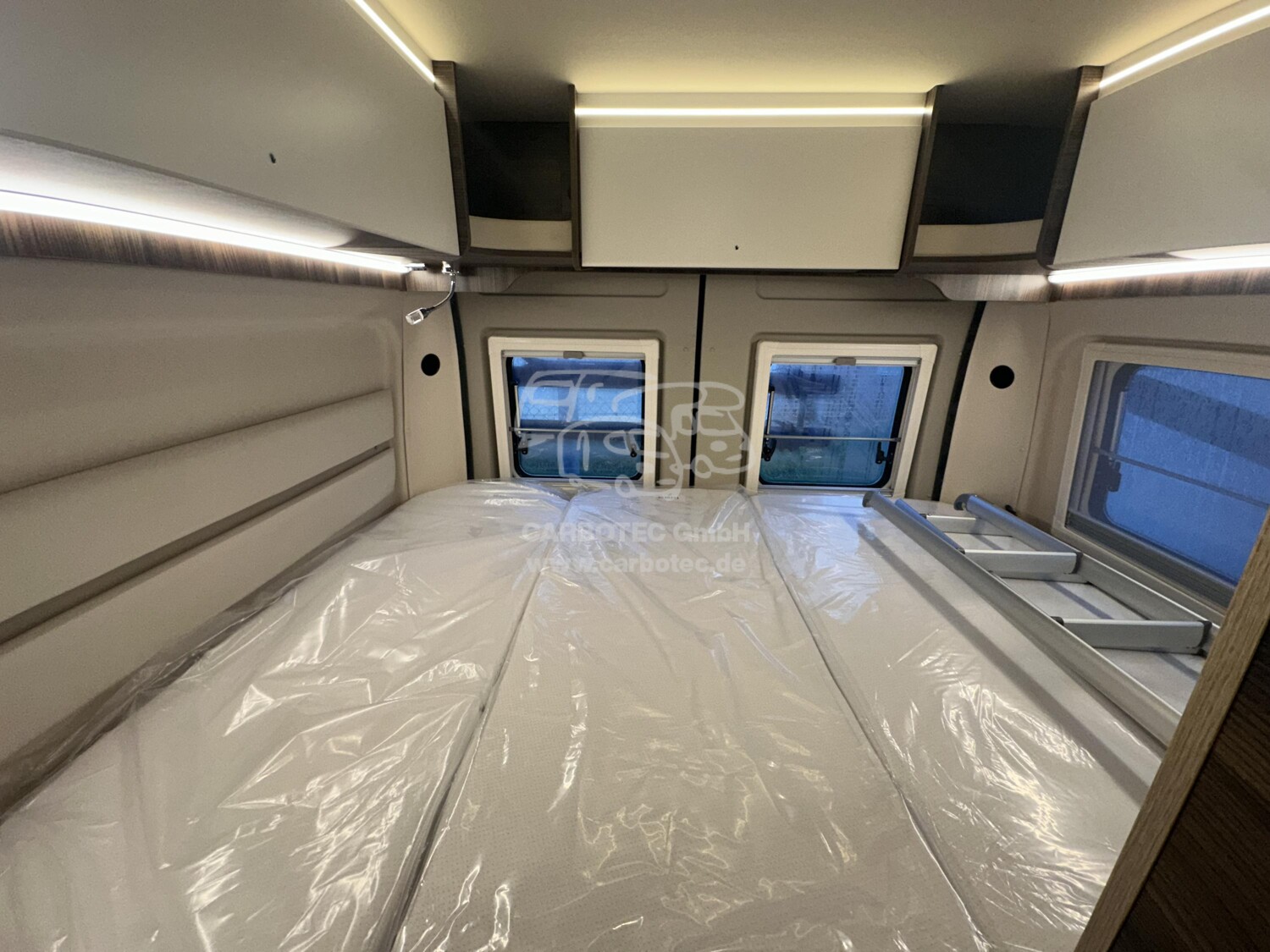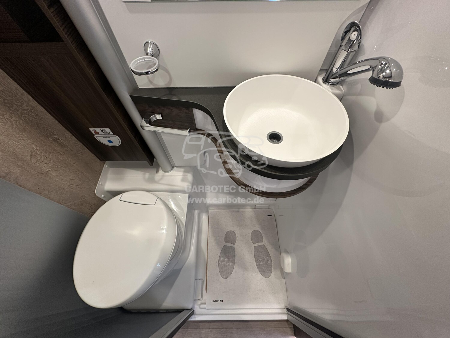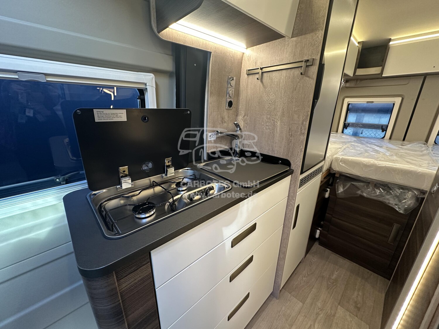 - Komfort Paket Ecovip CV (Schiebetür mit Fliegengitter, Vorbereitung Rückfahrkamera, Abwassertank isoliert, Abwassertank beheizt, Fenster seitlich links, LED-Außenleuchte und Raintech-System über Schiebetür, Holzeinlage für Duschwanne, Küchenausstattung: zusätzl. Arbeitsfläche seitlich, seitliche Ablagefächer mit Beleuchtung am Eingang)