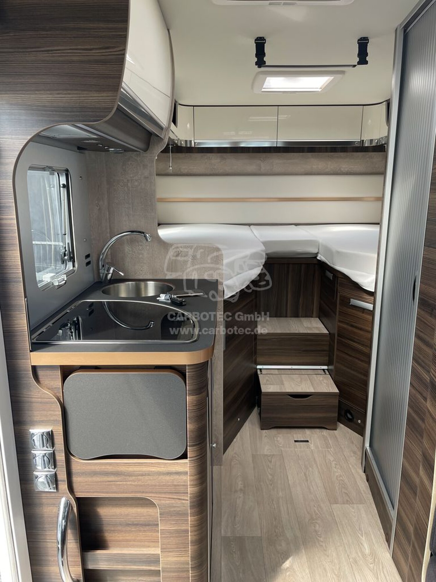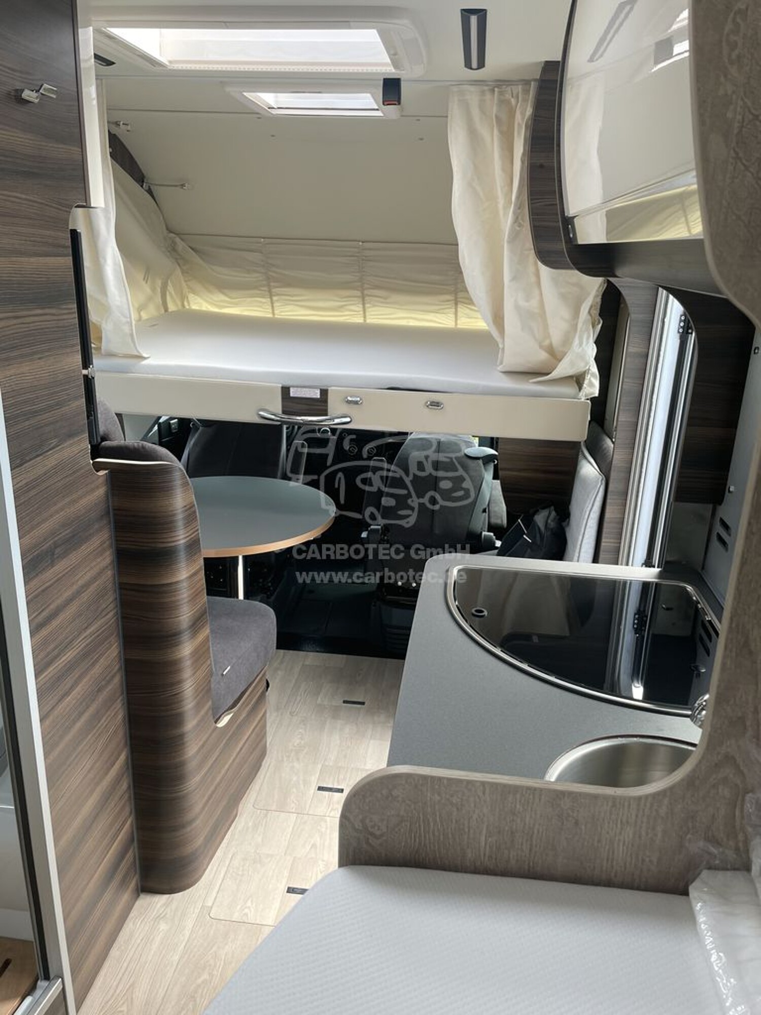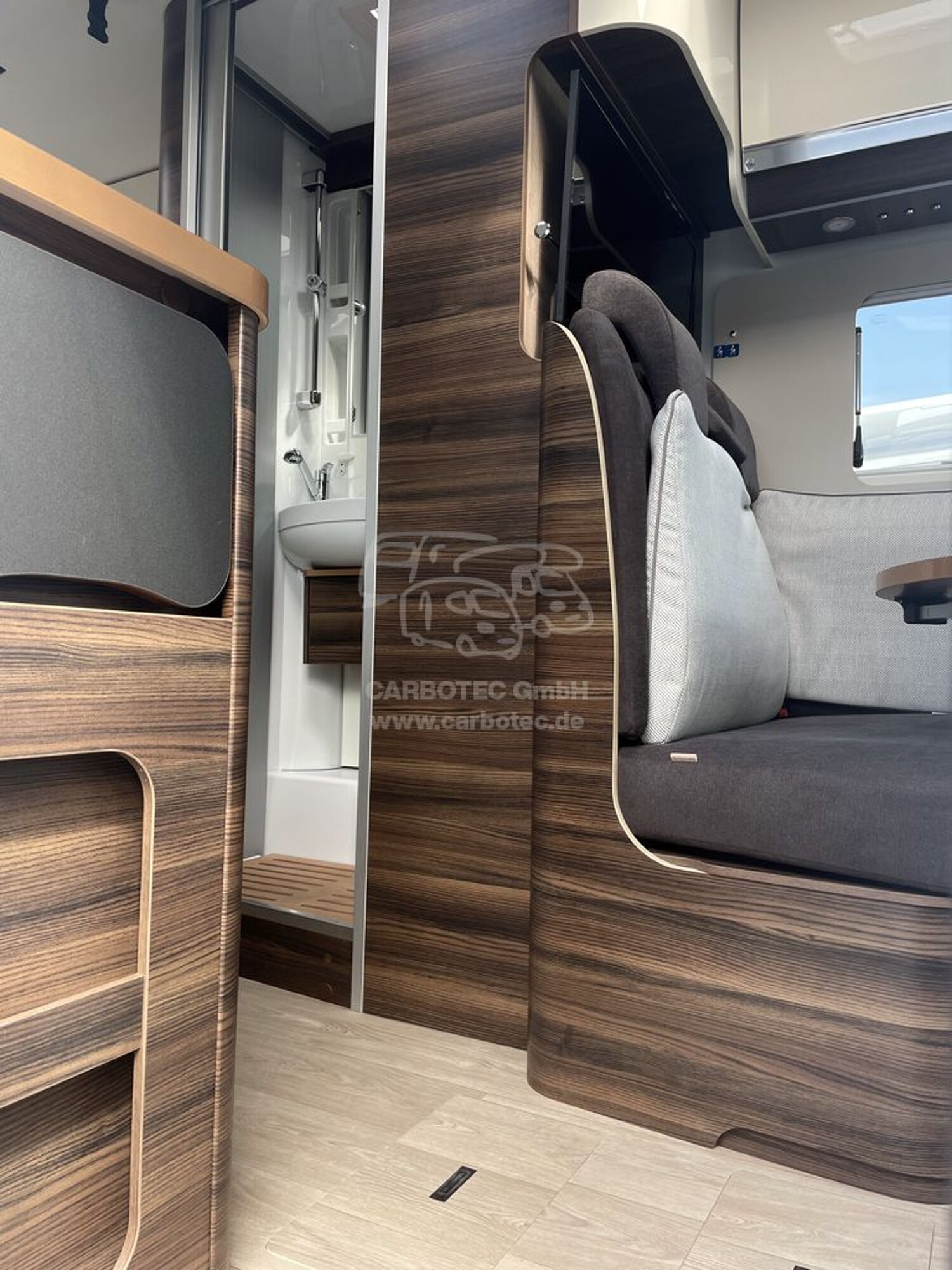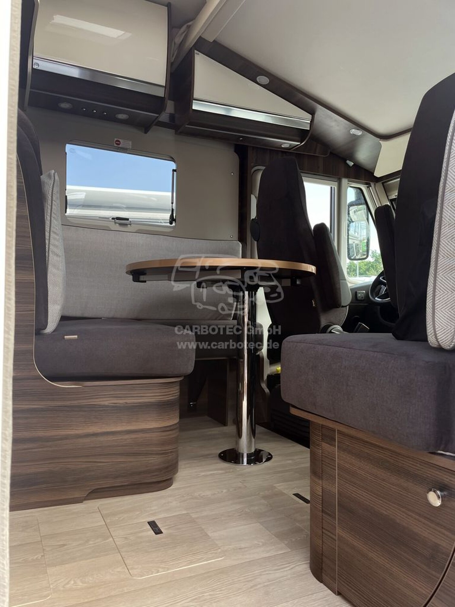 - Komfort Paket ECOVIP Integrierte (Teppichboden im Fahrerhaus und Fußmatte im Wohnraum, Fenster im Bad (außer Ecovip 2109), Verdunklungsplissee Fahrerhaus (für Front- und Seitenscheiben), Dimmbare Beleuchtung, Holzeinlage für Duschwanne, Vorbereitung Rückfahrkamera)