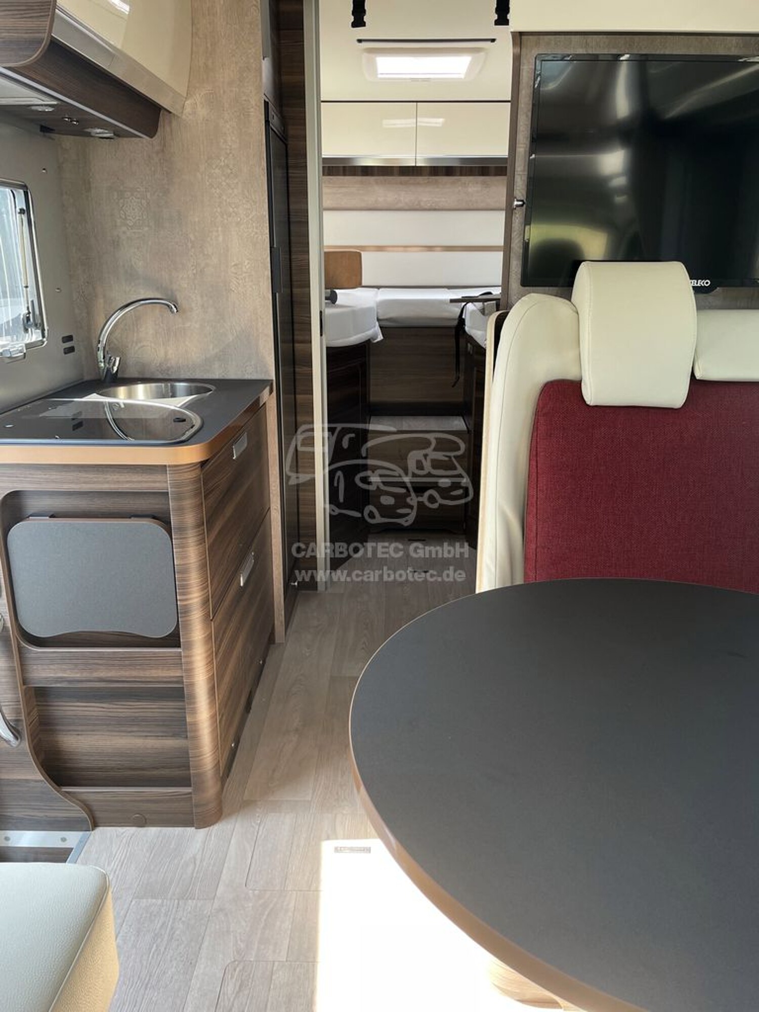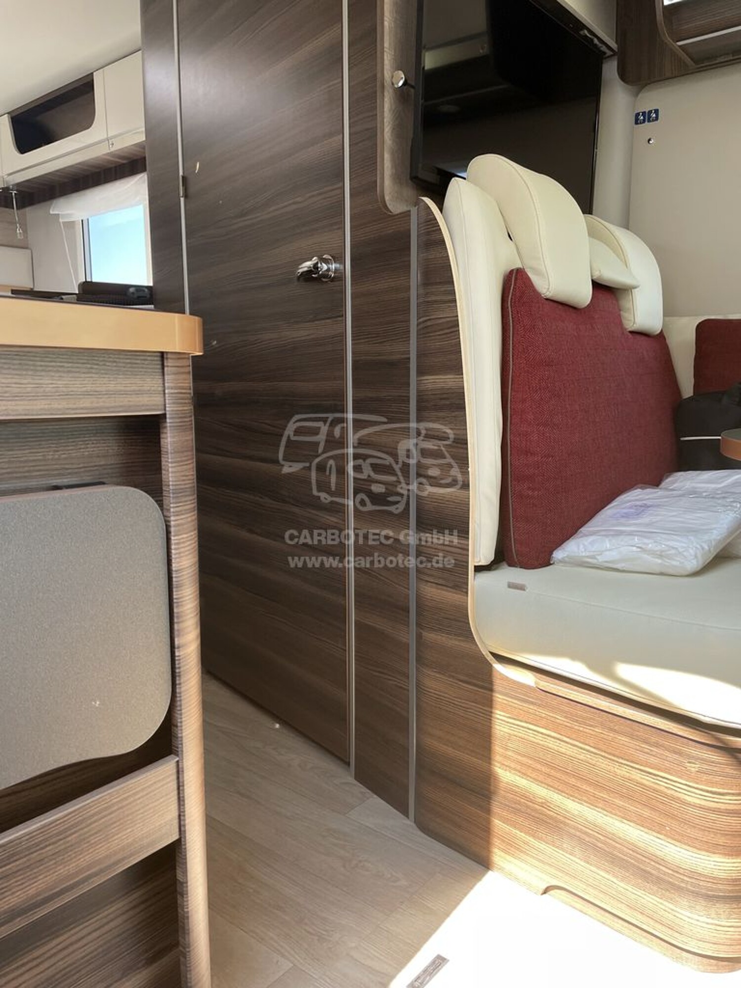 - Komfort Paket ECOVIP Teilintegrierte (Teppichboden im Fahrerhaus und Fußmatte im Wohnraum, Fenster im Bad, Verdunklungsplissee Fahrerhaus (für Front- und Seitenscheiben), Holzeinlage für Duschwanne, Vorbereitung Rückfahrkamera)