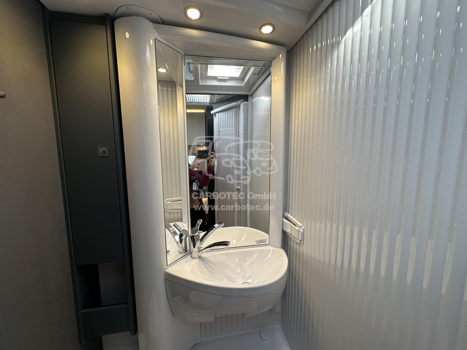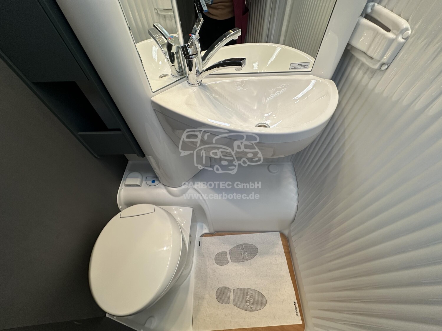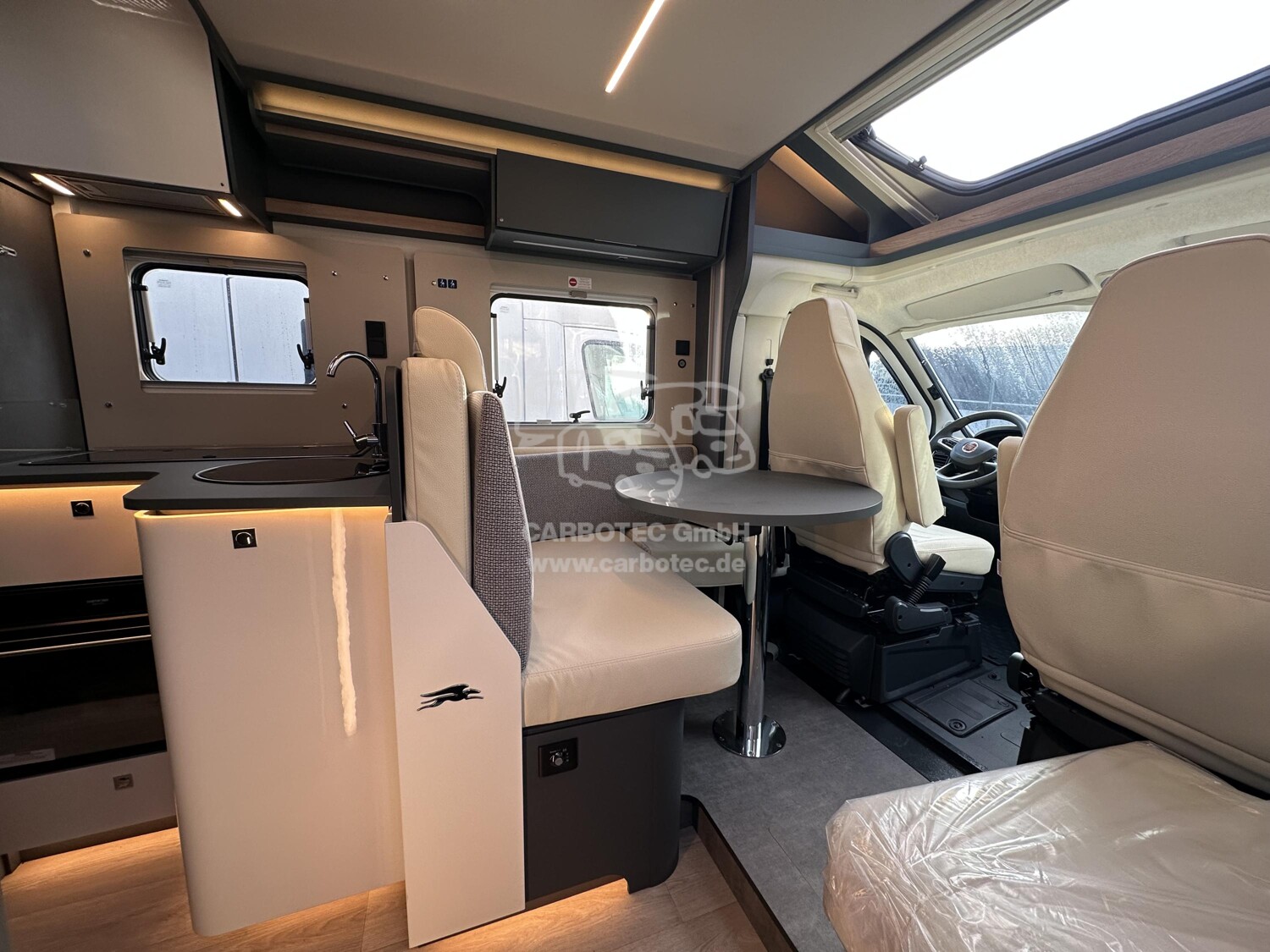 - Komfort Paket Kosmo L (Duscheinlage aus Holz, Fahrerhausteppich, Dunstabzugshaube, Isolierter Abwassertank, Beheizter Abwassertank, T-Haube mit Skyview zum Öffnen, Schlafzimmerwände in Eco-Leder verkleidet, Ausziehkörbe und -schränke in der Küche, Premium XL-Aufbautür, mit Fernbedienung, Zentralverriegelung, Fenster, Verdunkelung, Ablagefach und Gasdruckstoßdämpfer, Vorbereitung Rückfahrkamera, Auf den Wohnraum abgestimmte Sitzbezüge)