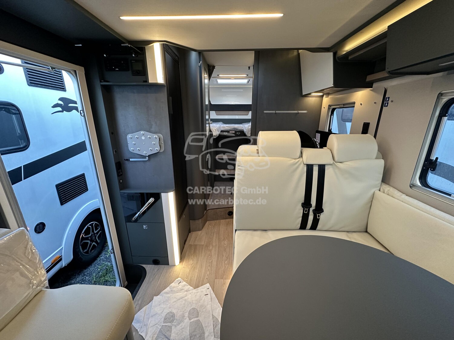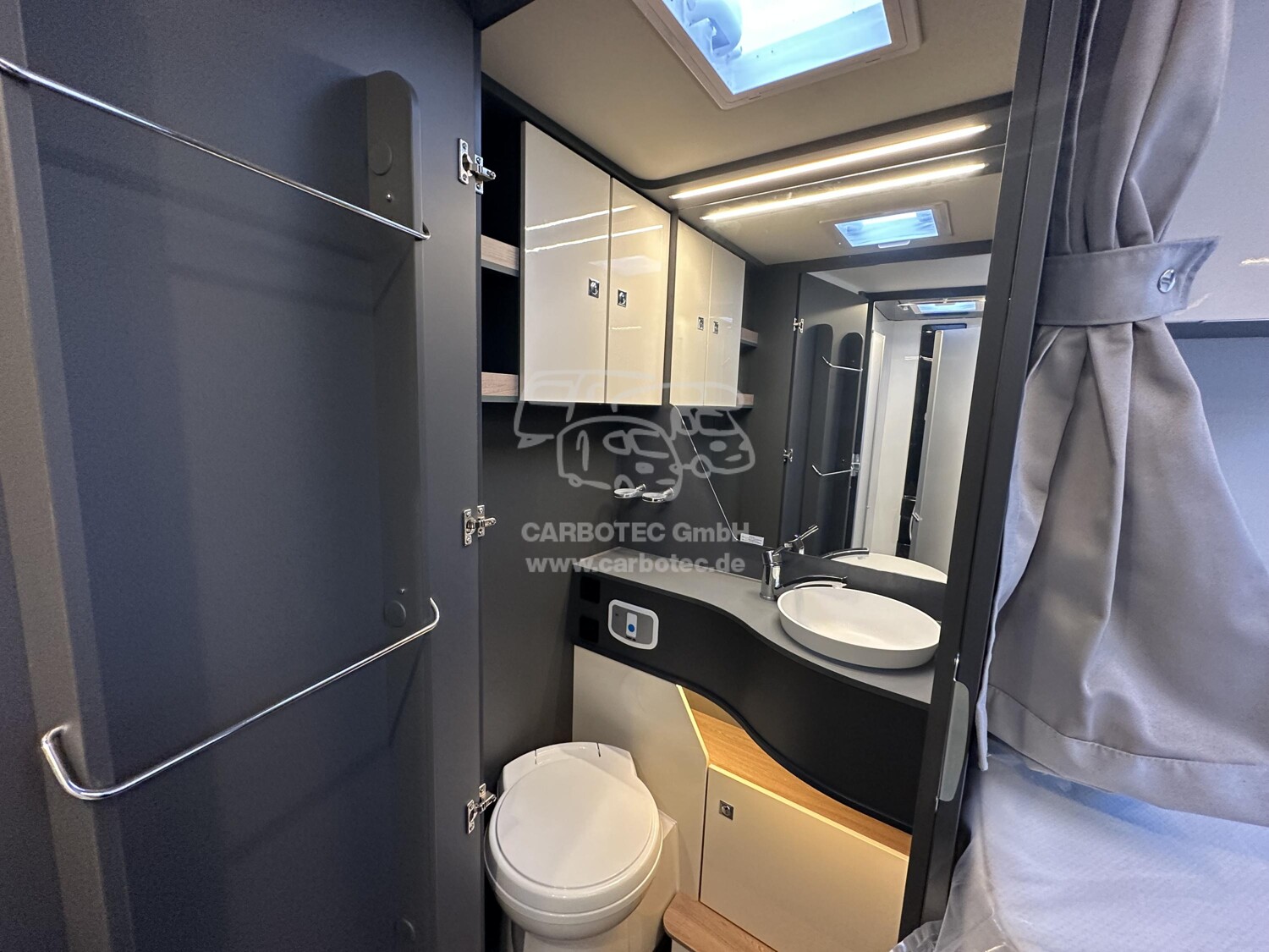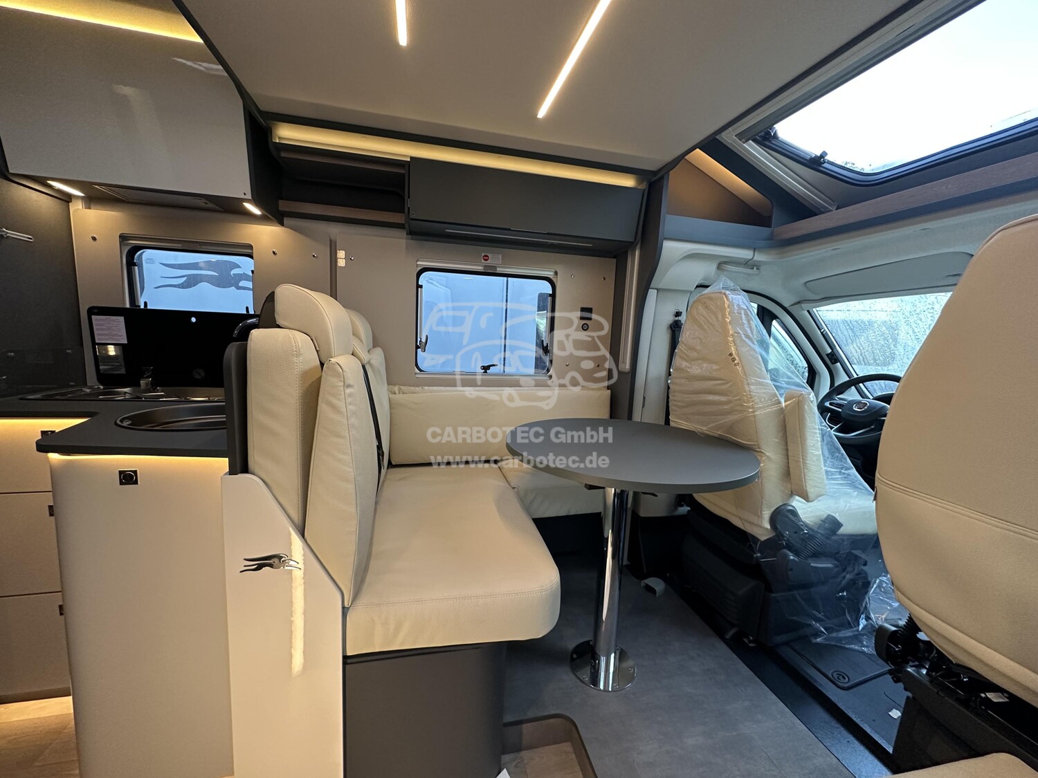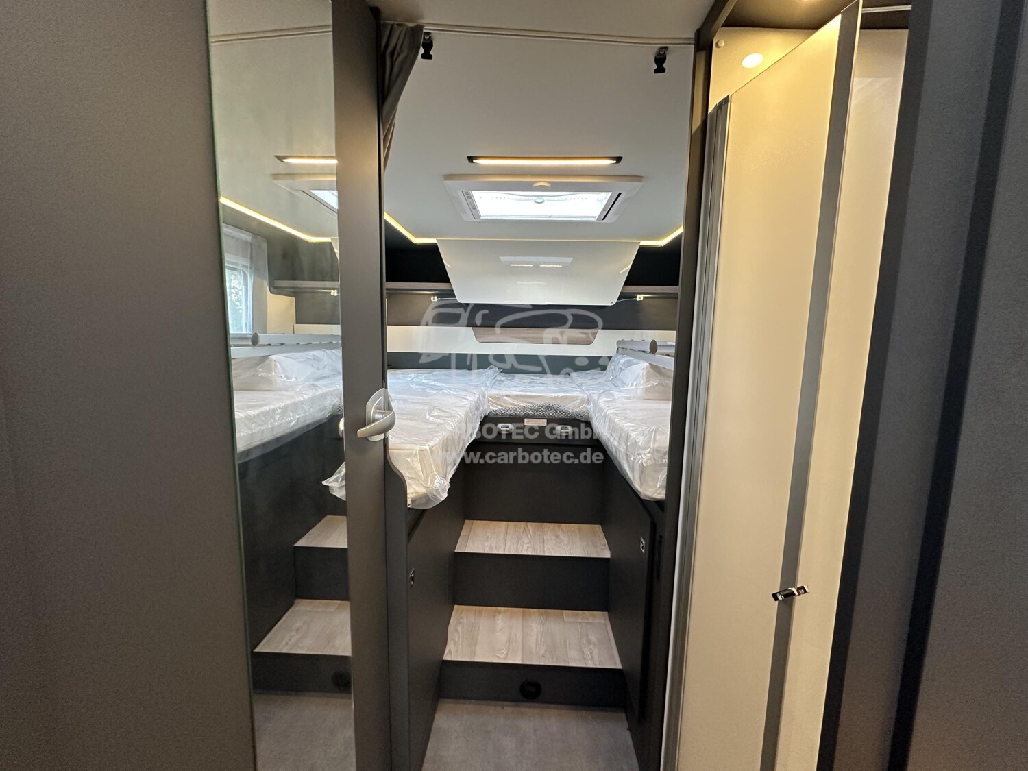 - Komfort Paket Kosmo L (Duscheinlage aus Holz, Fahrerhausteppich, Dunstabzugshaube, Isolierter Abwassertank, Beheizter Abwassertank, T-Haube mit Skyview zum Öffnen, Schlafzimmerwände in Eco-Leder verkleidet, Ausziehkörbe und -schränke in der Küche, Premium XL-Aufbautür, mit Fernbedienung, Zentralverriegelung, Fenster, Verdunkelung, Ablagefach und Gasdruckstoßdämpfer, Vorbereitung Rückfahrkamera, Auf den Wohnraum abgestimmte Sitzbezüge)