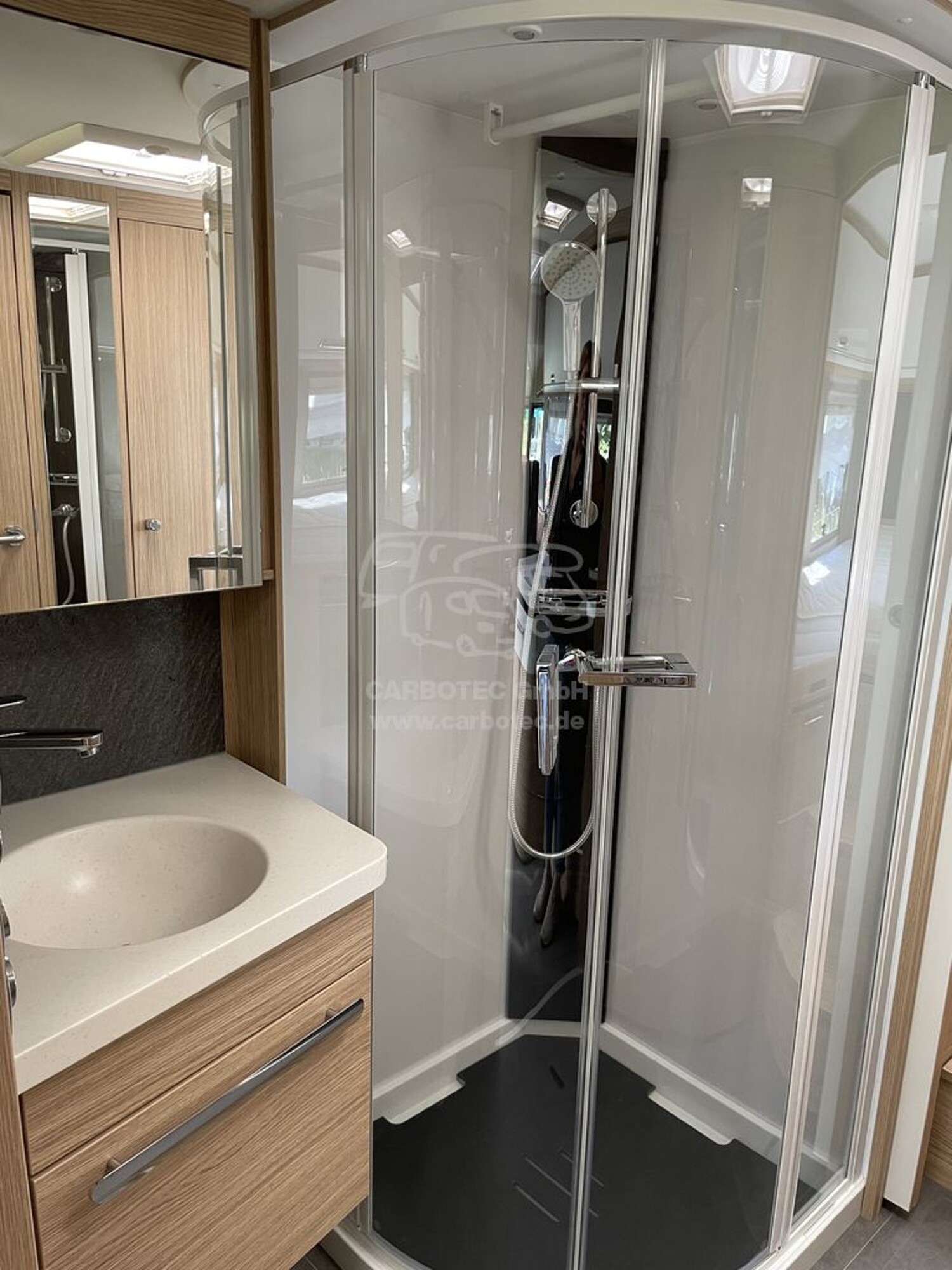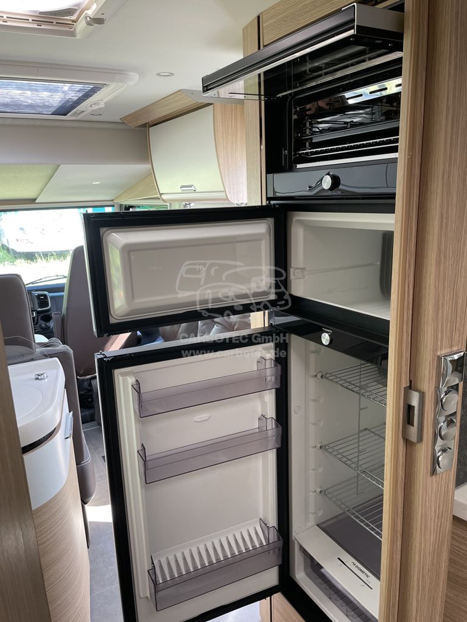 - CP - Comfort Paket (Panoramadachluke (Kippdach) über Wohnraum anstelle Dachluke über Wohnraum, Froli Schlafsystem inkl. Kaltschaummatratze, TecTower mit 142 l + 35 l Gefrierfach (Türöffnung nach links und rechts), inkl. 25 l Gasbackofen, Verdunklungsplissee für Fahrer-/Beifahrerfenster)