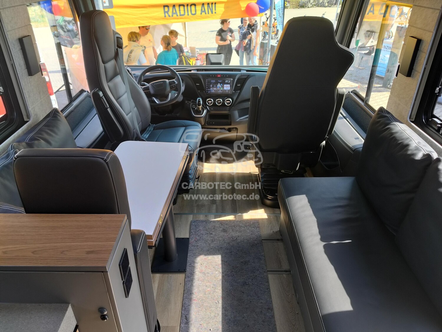 - Sofa Fahrerseite zur L-Sitzbank umbaubar (2 zusätzliche Gurtsitze)