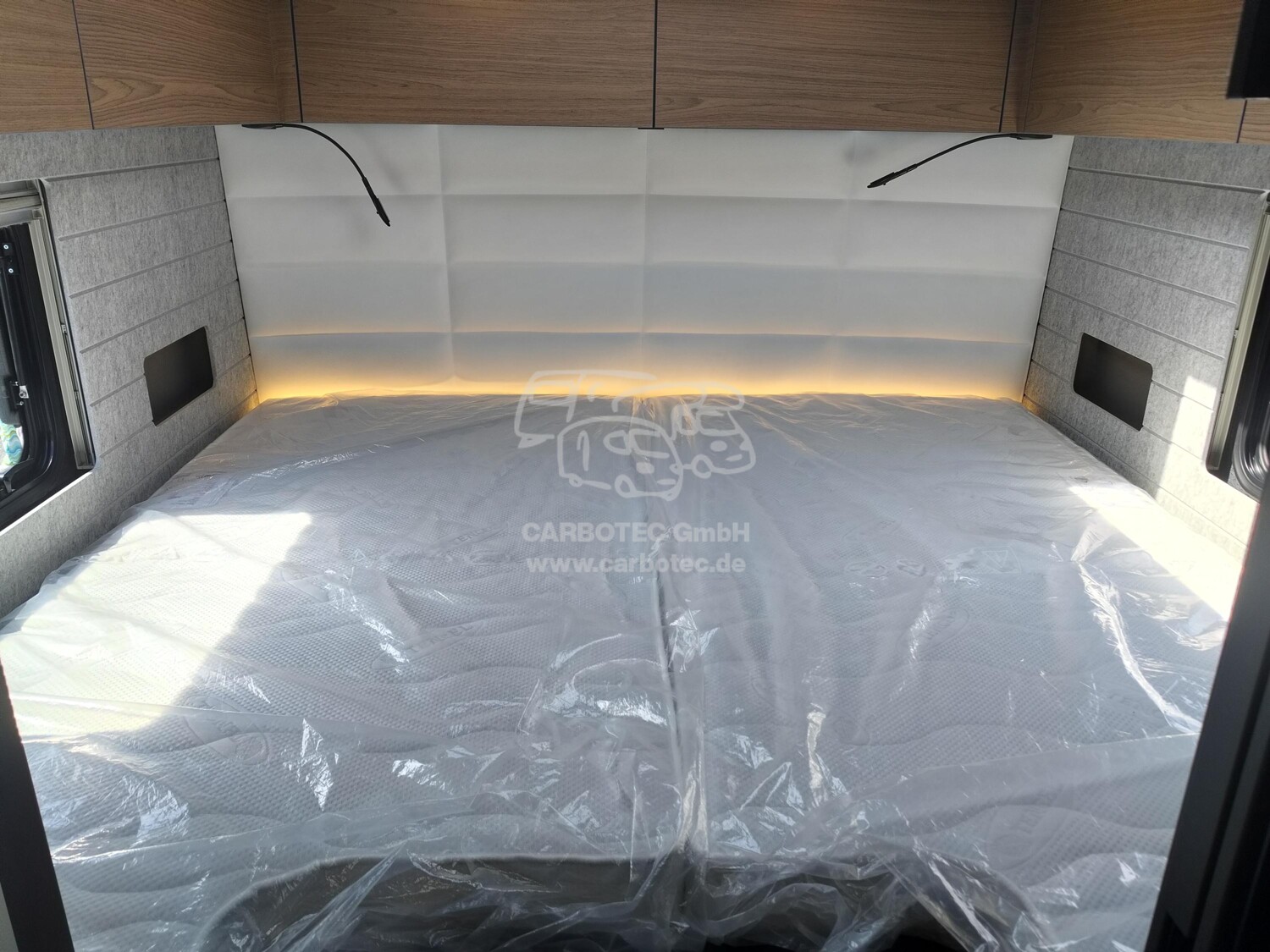 - MMP - Multimedia Paket (Navigationsgerät mit 9" Touchscreen, inkl. Radio mit DAB+, Bluetooth und Rückfahrkamera hinter Lilien-Emblem (nur in Verbindung mit Radiovorbereitung, Code V5073013 oder V5073014), Radiovorbereitung "Soundsystem", bestehend aus vier High-End-Zwei-Wege-Lautsprechern, Subwoofer, Dachantenne, Sat.-Anlage Oyster V Vision (ohne Receiver), Smart TV 32", inkl. Triple Tuner, Bluetooth 4.2, elektrisch ausfahrbar im Raumtrenner zwischen Küche und Sofa)